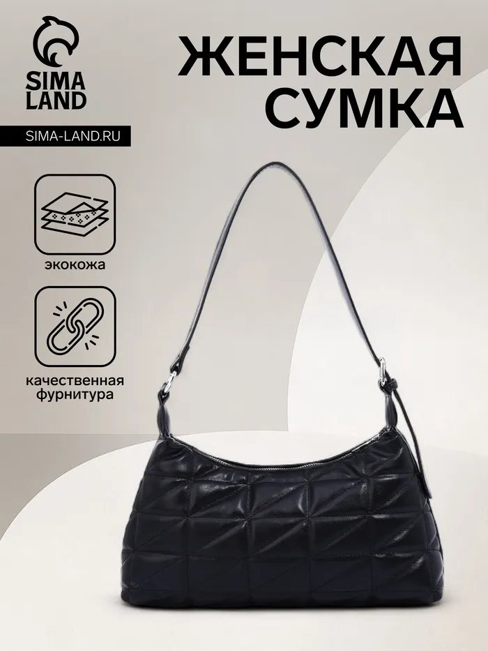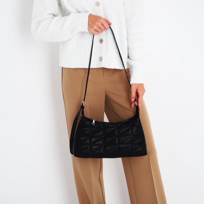 Сумка женская багет на молнии, 33×7×15 см, чёрная — Характеристики