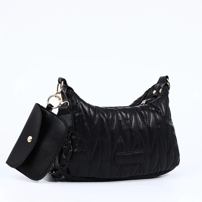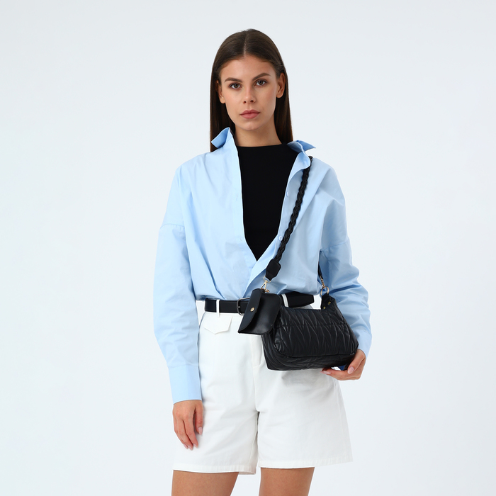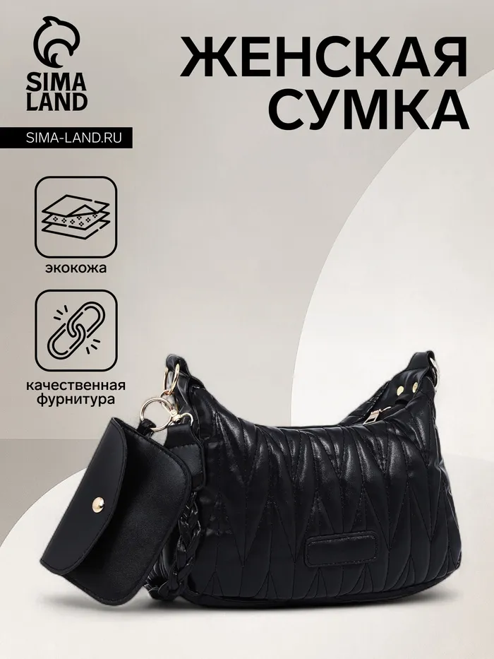 Сумка женская багет на молнии, с кошельком, 25×8×16.5 см, чёрная — Характеристики