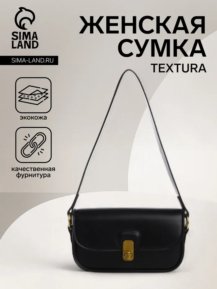 Сумка женская багет TEXTURA на молнии, 21×6×11 см, чёрная — Характеристики