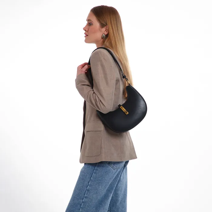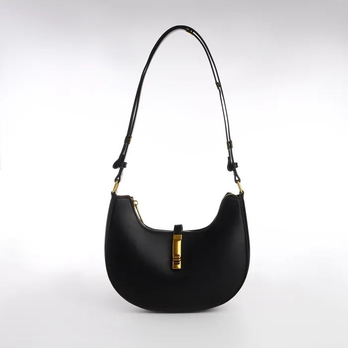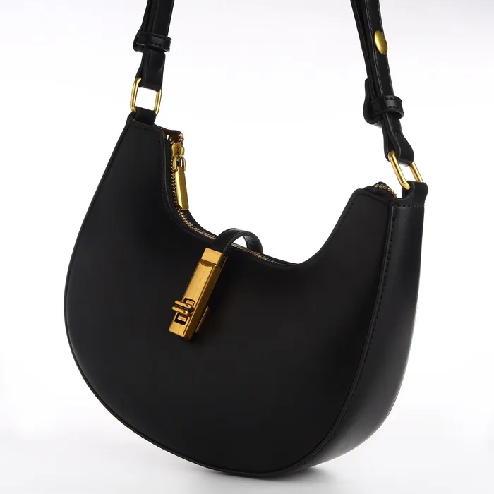- Стильный дизайн: строгий чёрный цвет и золотая фурнитура придают сумке роскошный вид, подходящий для любого случая.