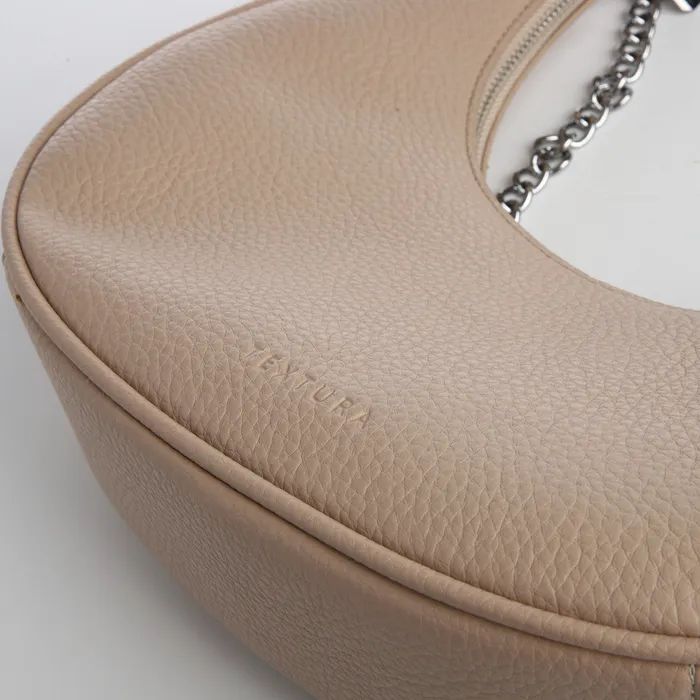 Изготовленная из искусственной кожи, она привлекает внимание своим бежевым оттенком, который добавляет утончённости любому образу.