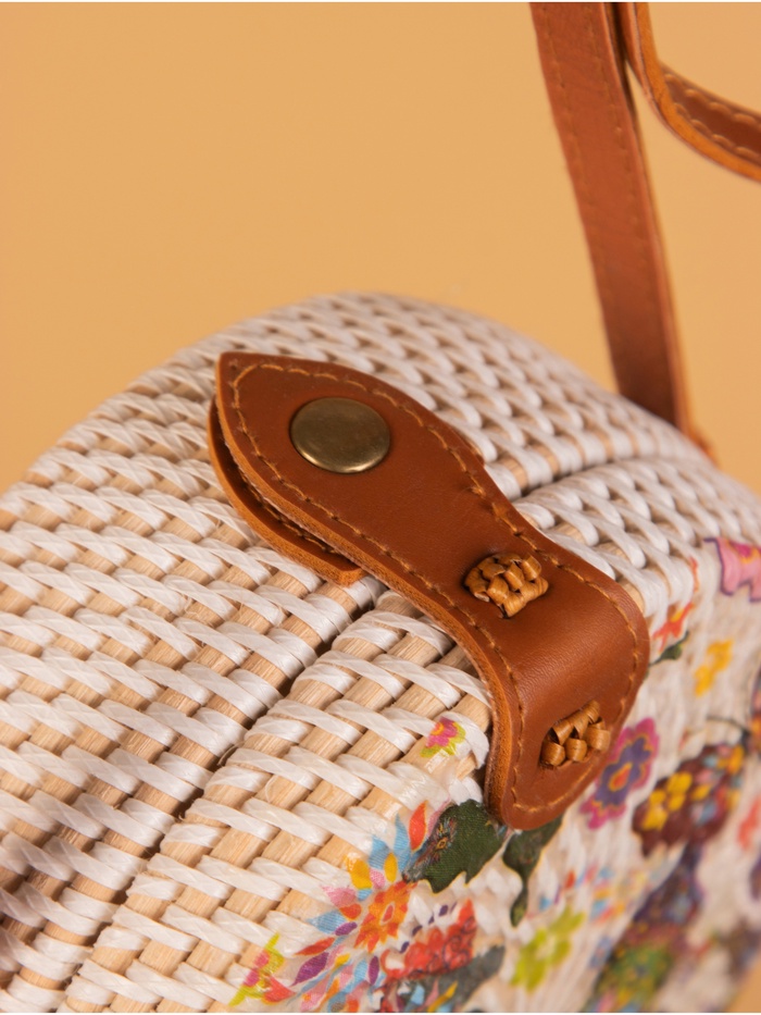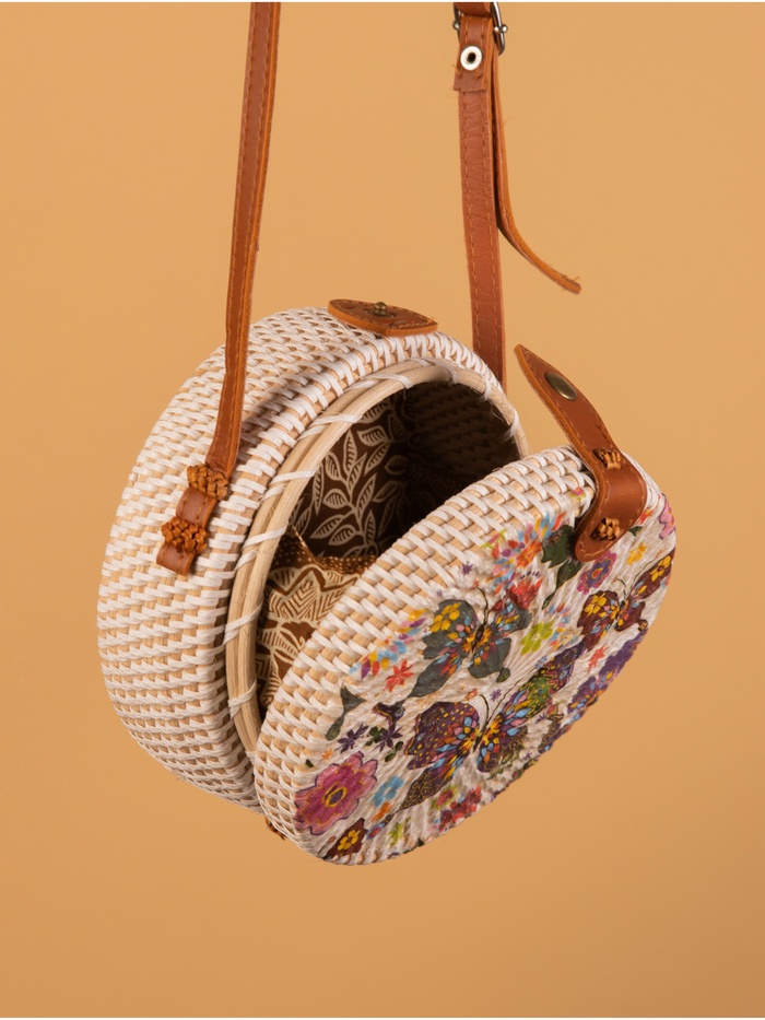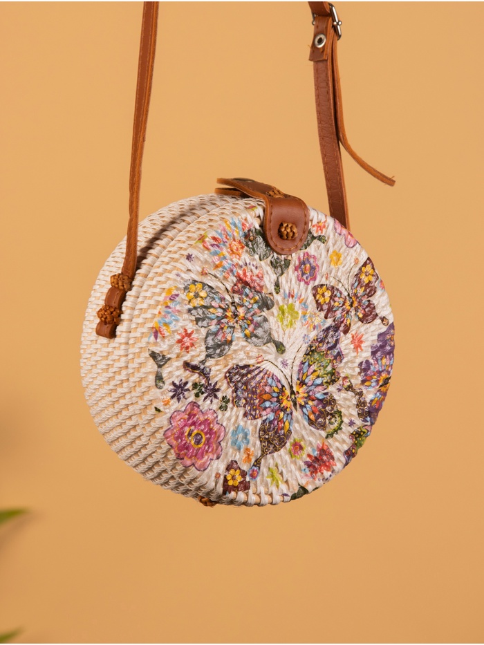 Сумка плетёная «Бабочки» станет вашим незаменимым спутником летом. Оригинальная сумка из натурального ротанга выполнена в стильном белом и разноцветном исполнении, акцентируя ваше внимание на деталях. Она легко закрывается на удобную кнопку, а регулируемый ремешок позволяет носить сумку как на плече, так и через плечо. Сумка среднего размера с жёстким каркасом идеально подходит для любой женщины и девочки, предпочитающей стиль и функциональность. Вместительный внутренний карман позволяет хранить важные мелочи в безопасности, а коричневая фурнитура подчёркивает элегантность дизайна.