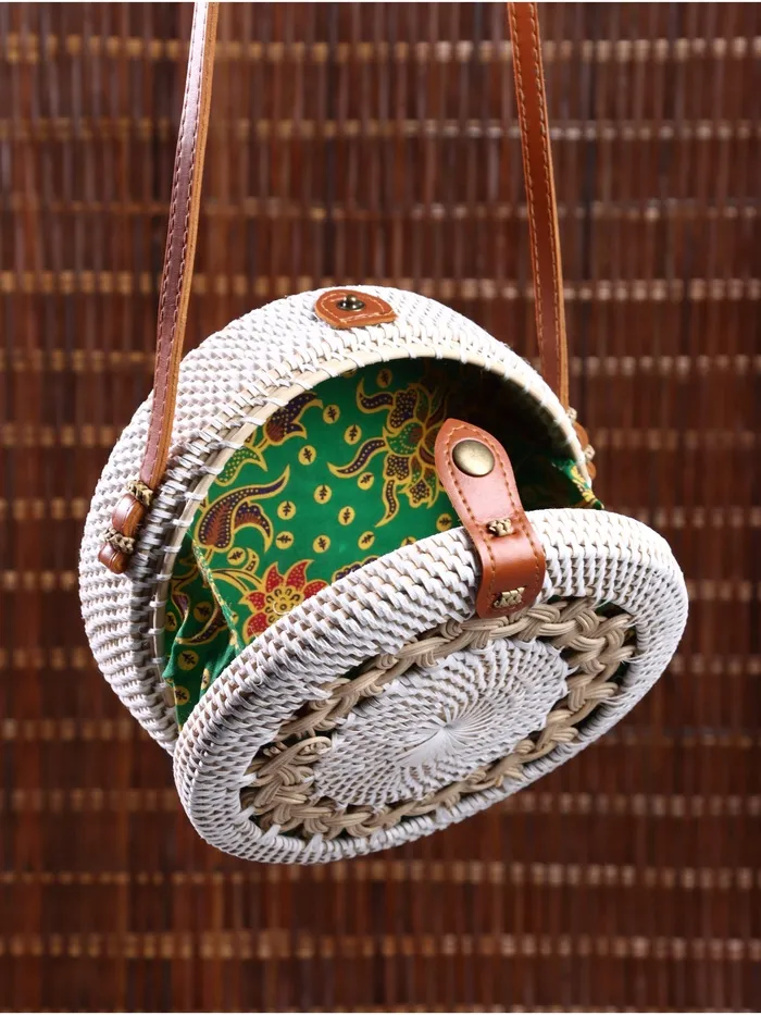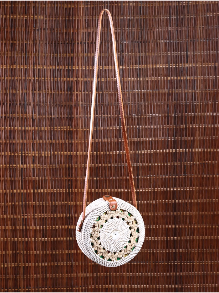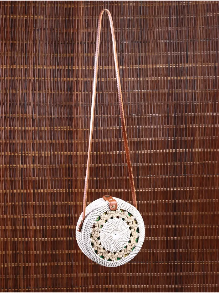 Стильная плетёная сумка из натурального ротанга — идеальный аксессуар для летнего отдыха и повседневного образа. Её лаконичный дизайн в бежевых тонах с коричневой фурнитурой подчеркнёт ваш вкус и добавит легкости любому образу. Удобный формат кросс-боди позволяет носить её на плече или через плечо, оставляя руки свободными.