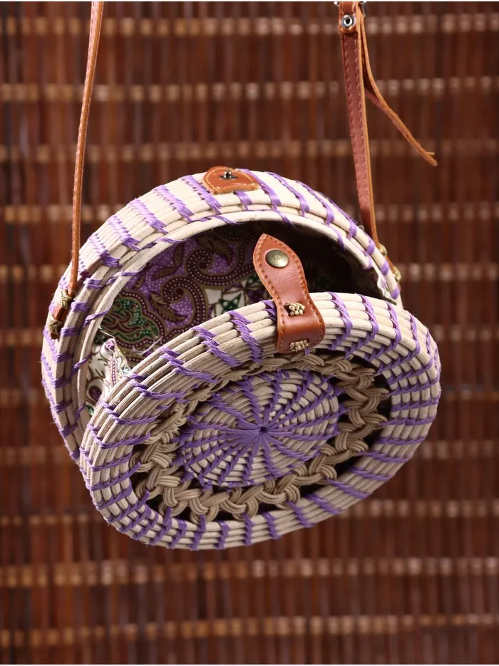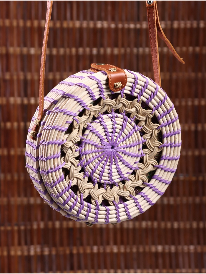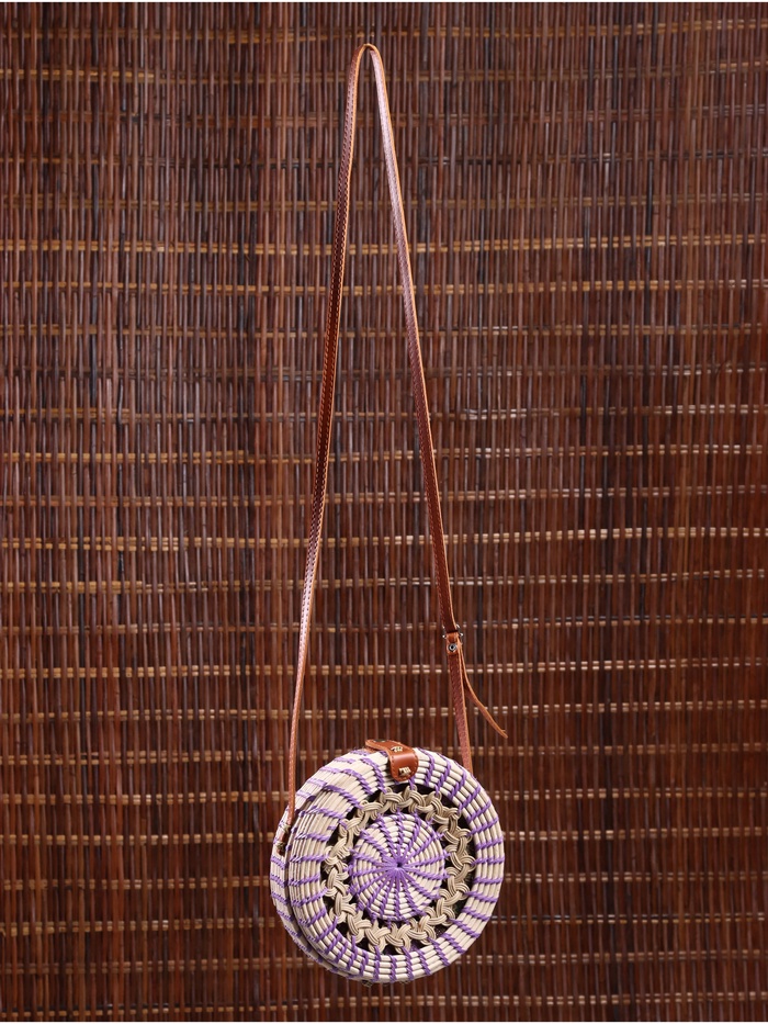Стильная плетёная сумка из натурального ротанга станет идеальным аксессуаром для летнего отдыха и повседневного образа. Её лаконичный дизайн в сиреневом оттенке подчеркнёт вашу индивидуальность, а удобный формат кросс-боди позволит носить её с комфортом.