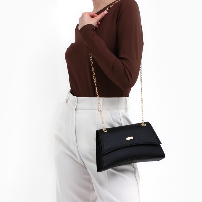 Сумка женская из искусственной кожи с клапаном, 26×16×9 см, черная — Характеристики