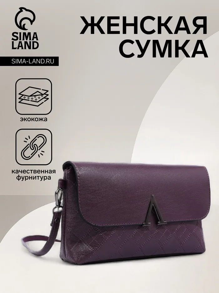 Сумка женская кросс-боди на магните, 24×6×14 см, фиолетовая — Характеристики