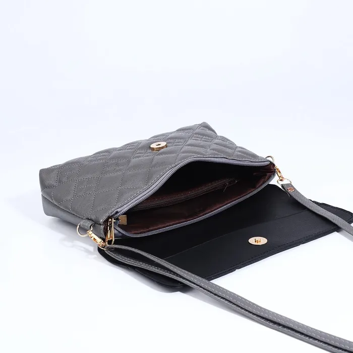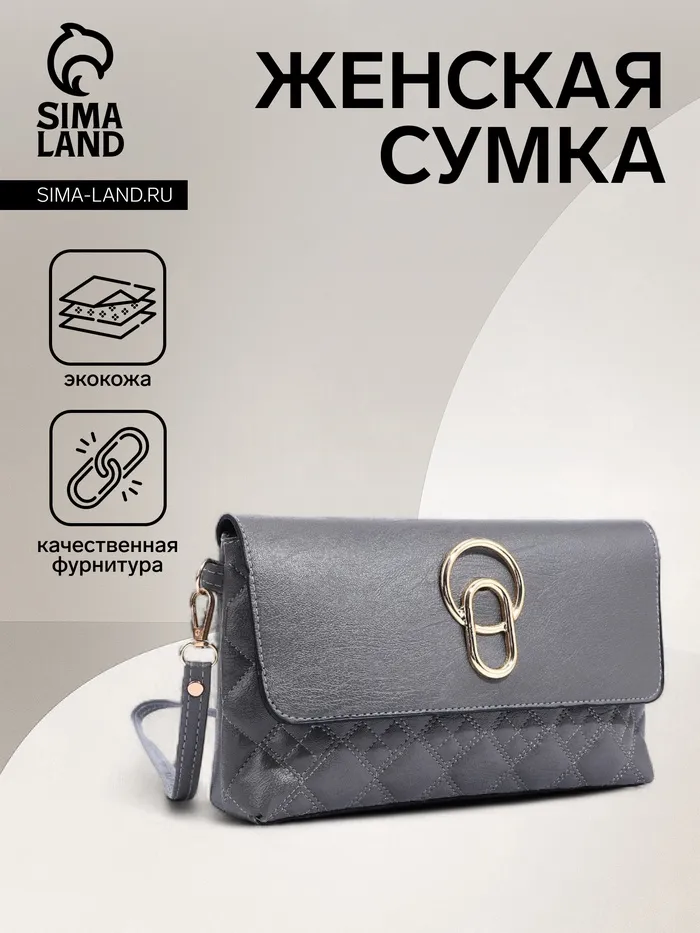Сумка женская кросс-боди на магните, 24×6×14 см, с золотистой фурнитурой, серая — Характеристики