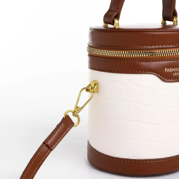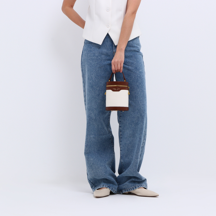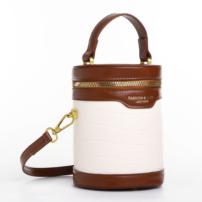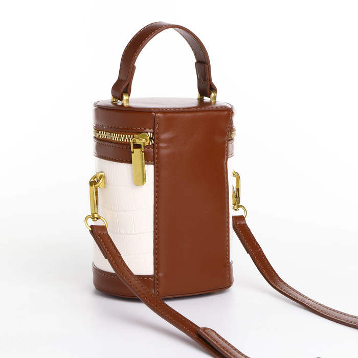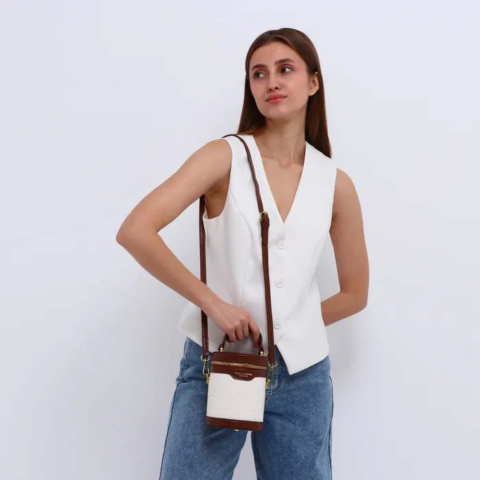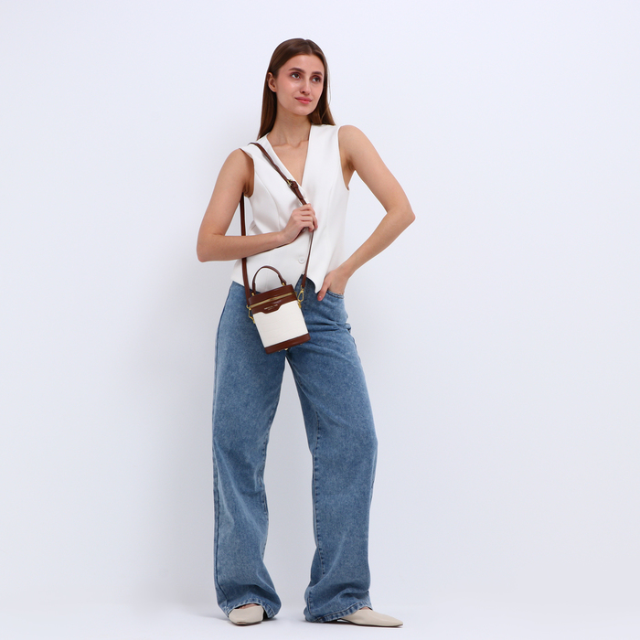 Сумка женская кросс-боди на молнии, 13×11×16 см, белый/коричневый — Характеристики