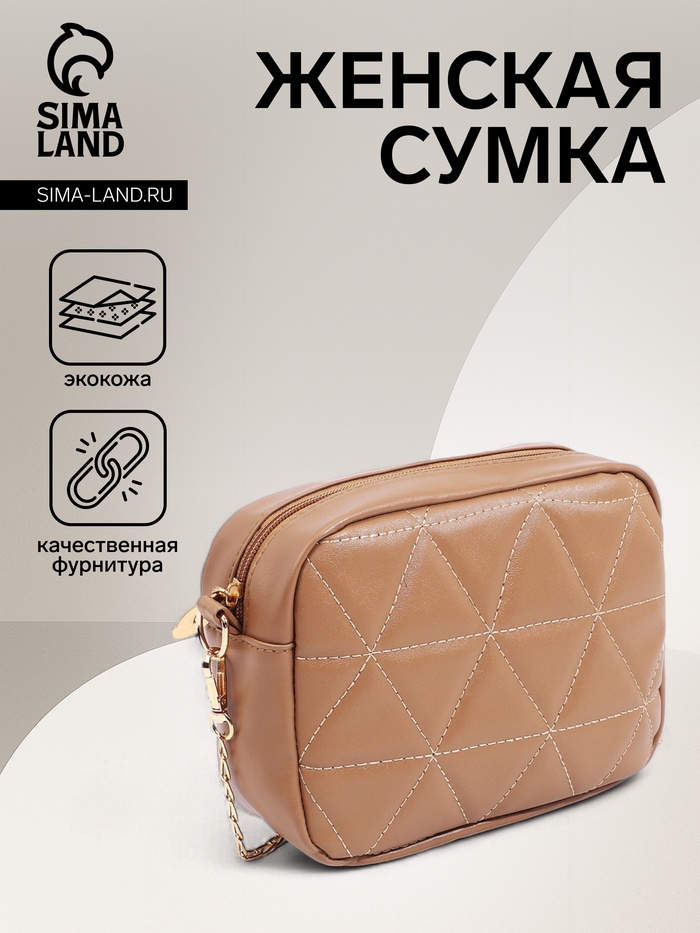 Сумка женская кросс-боди на молнии, 17×6×14 см, бежевая — Характеристики