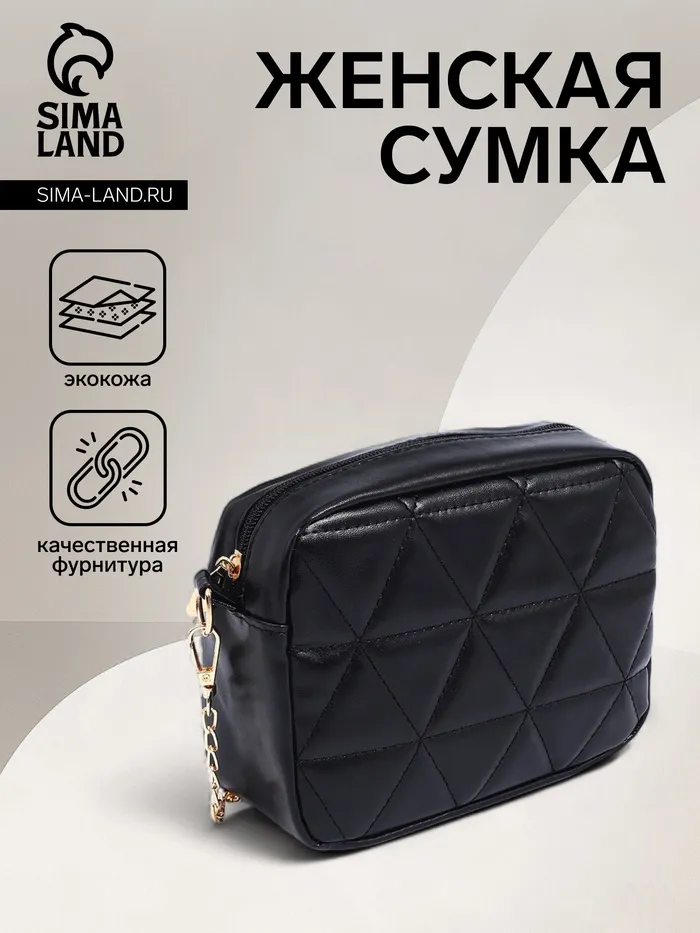 Сумка женская кросс-боди на молнии, 17×6×14 см, чёрная — Характеристики