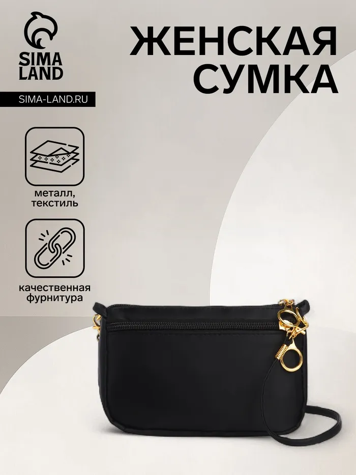 Сумка женская кросс-боди на молнии, 18×6.5×12 см, чёрная — Характеристики