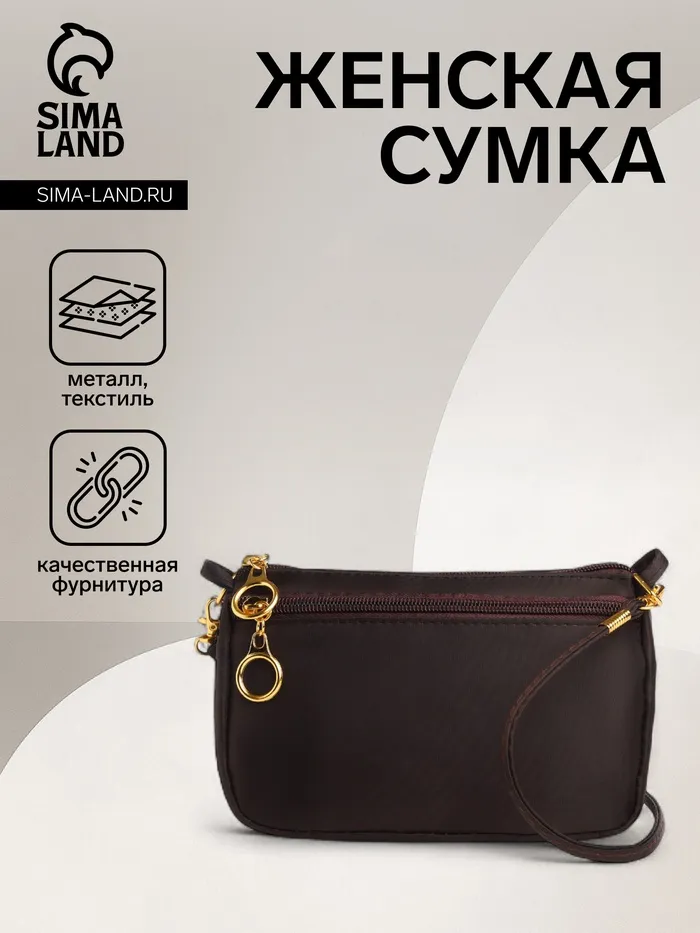 Сумка женская кросс-боди на молнии, 18×6.5×12 см, коричневая — Характеристики