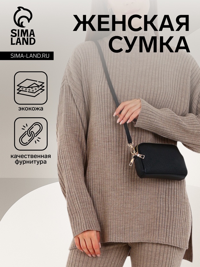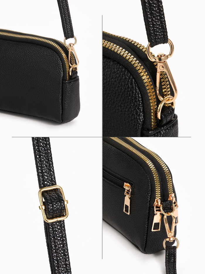 Сумка женская кросс-боди на молнии, 19×4×13 см, чёрная — Характеристики