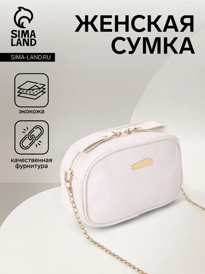 Сумка женская кросс-боди на молнии, 19×7×13 см, белая — Характеристики