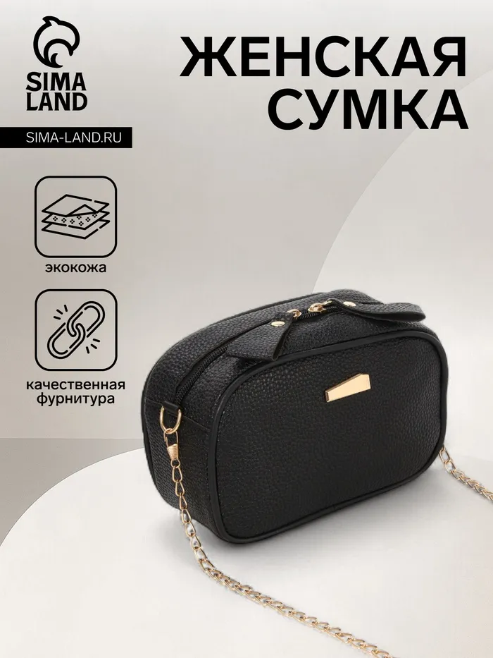 Сумка женская кросс-боди на молнии, 19×7×13 см, чёрная — Характеристики