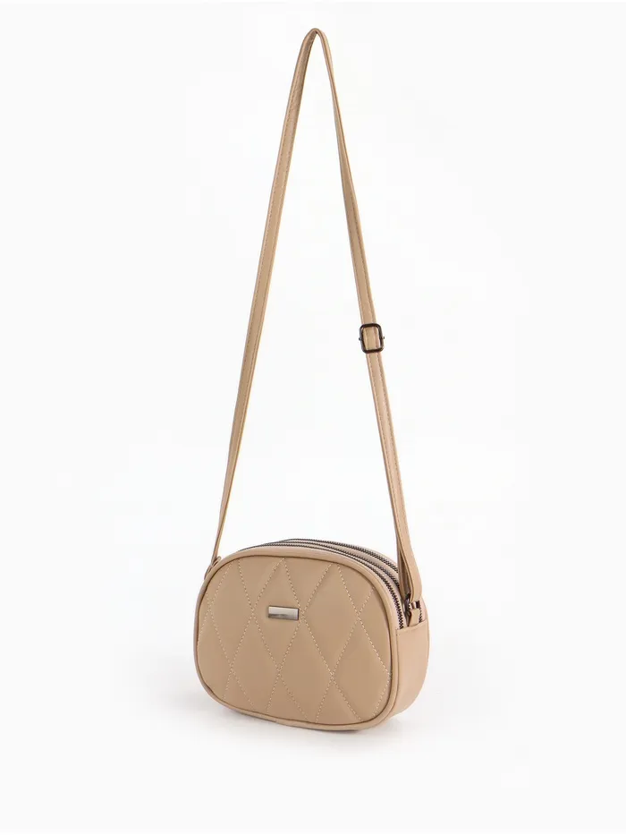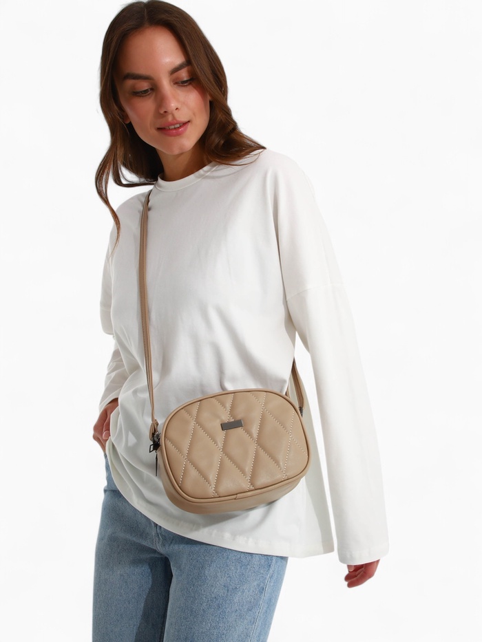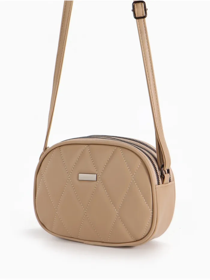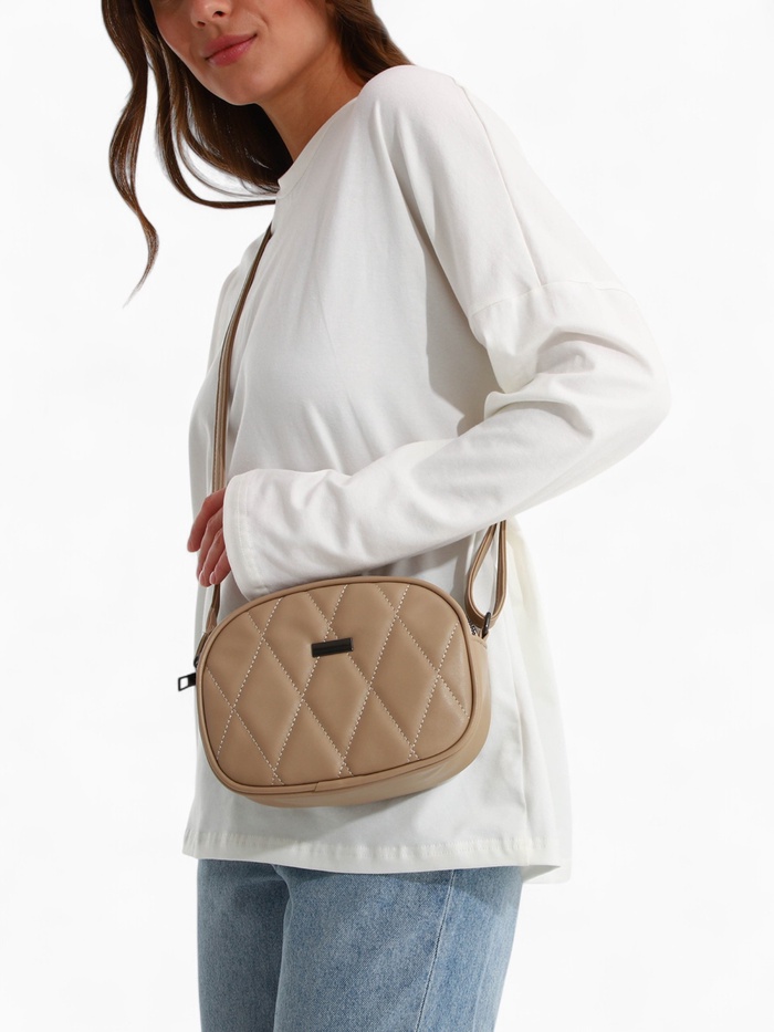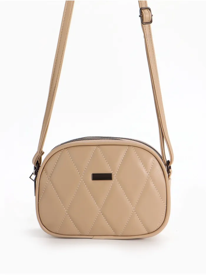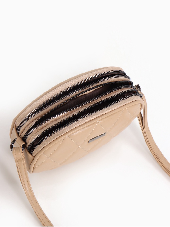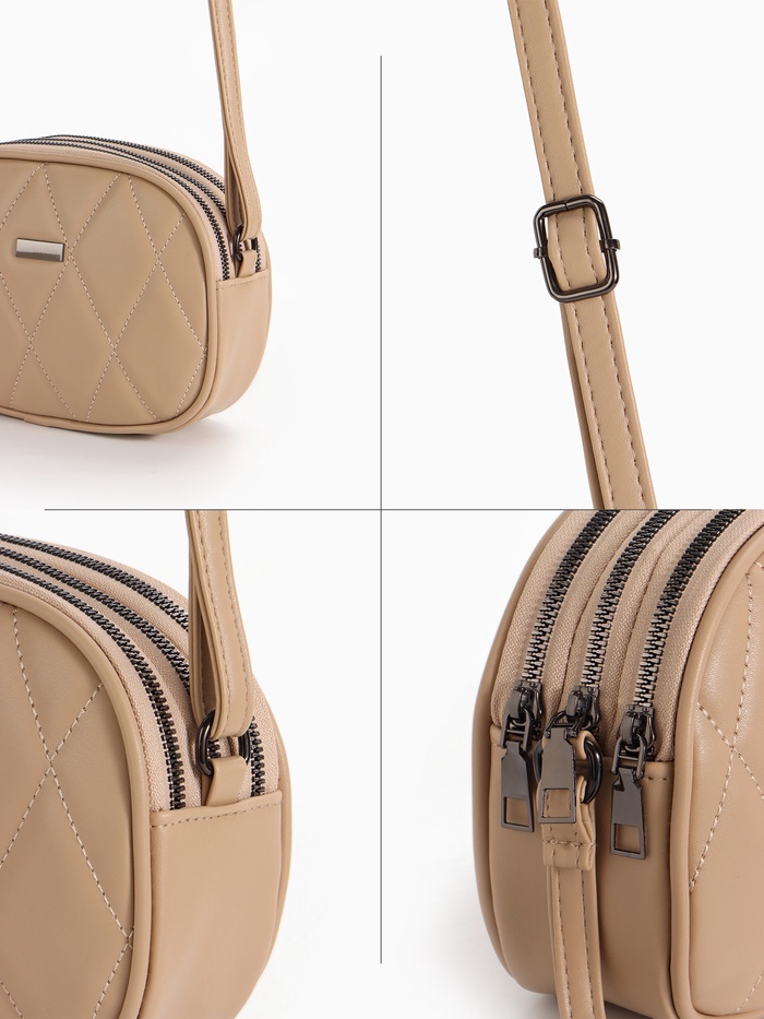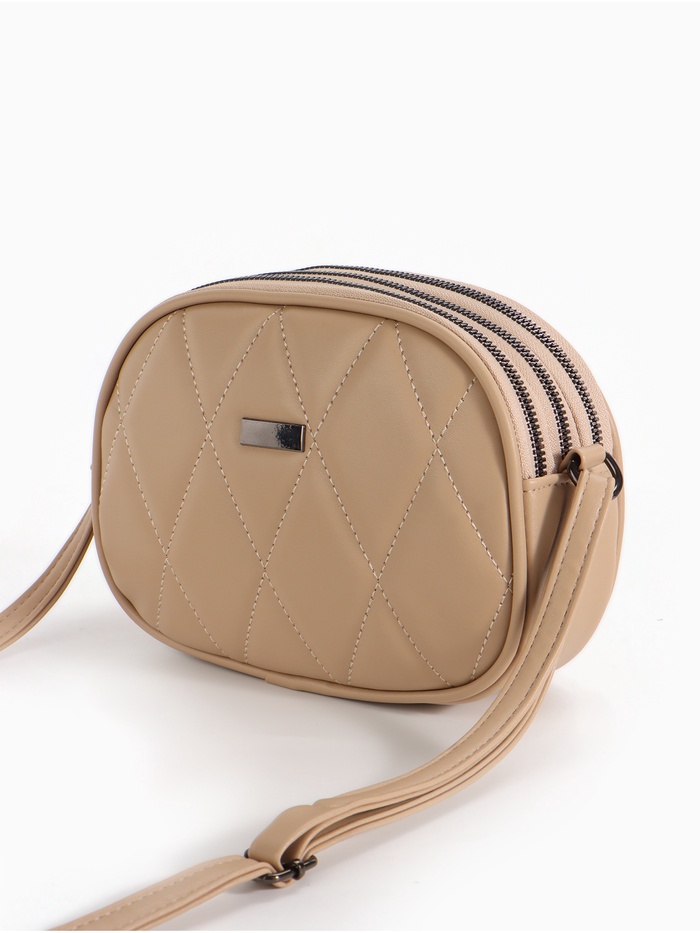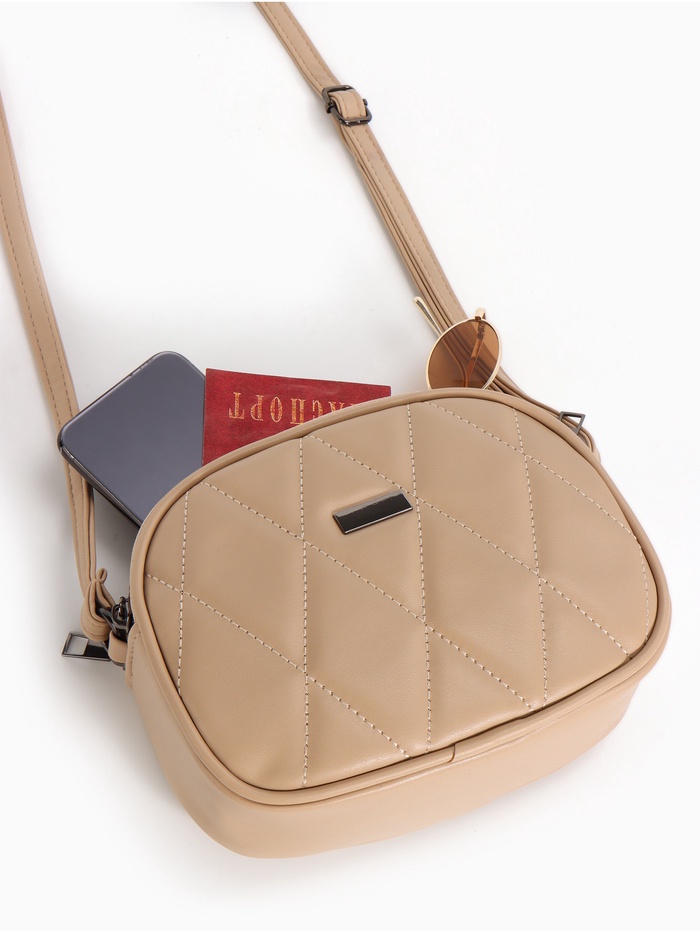 Сумка женская кросс-боди на молнии, 19×7×15 см, со стёжкой, бежевая — Характеристики