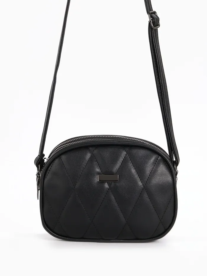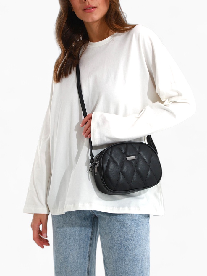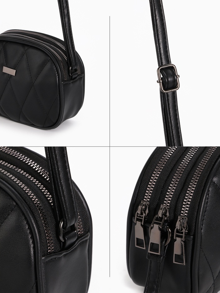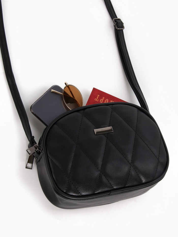 Сумка женская кросс-боди на молнии, 19×7×15 см, со стёжкой, чёрная — Характеристики