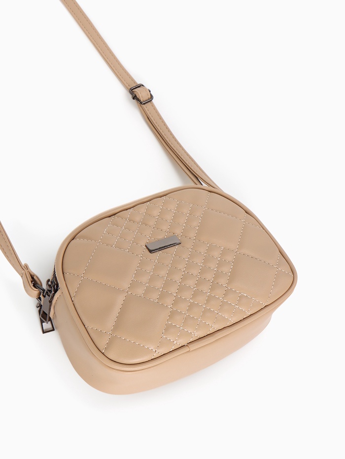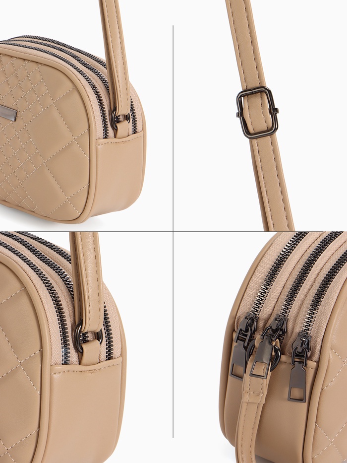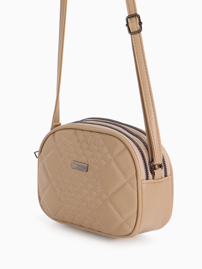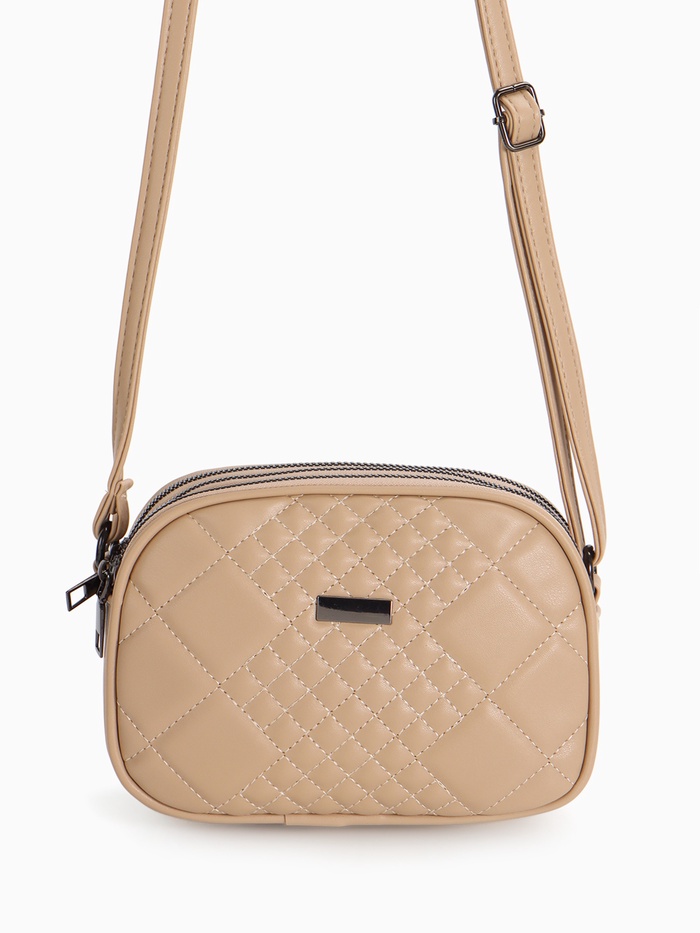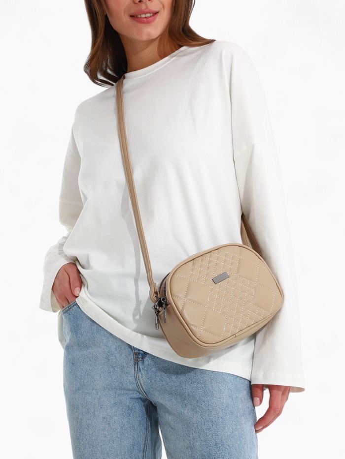 Сумка женская кросс-боди на молнии, 19×7×15 см, в клетку, бежевая — Характеристики