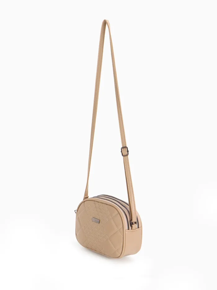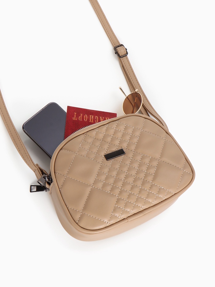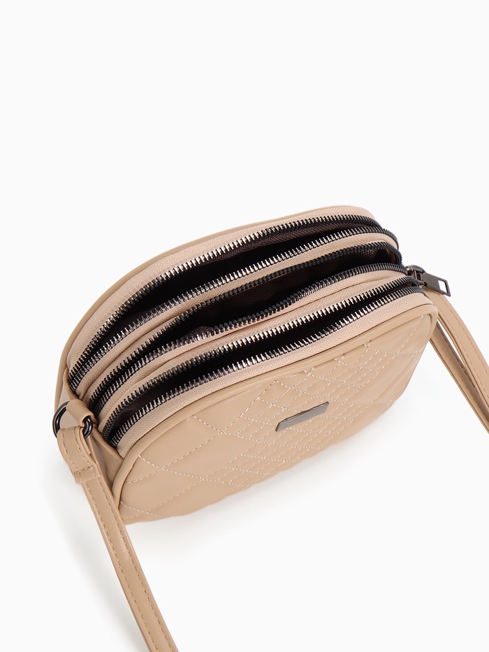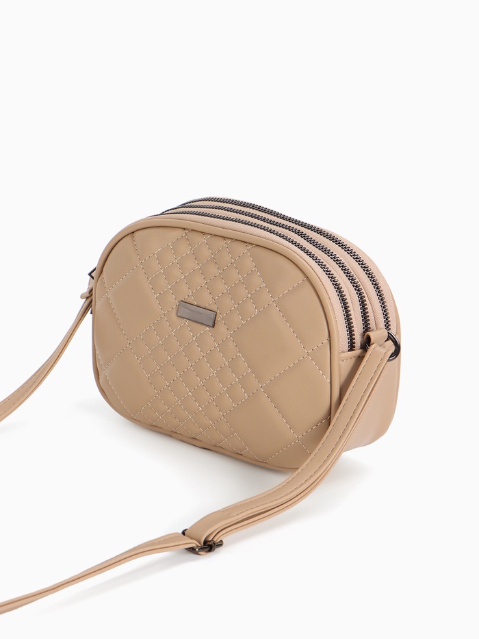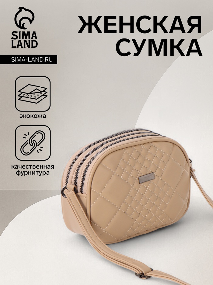 Сумка женская кросс-боди на молнии, 19×7×15 см, в клетку, бежевая — Характеристики