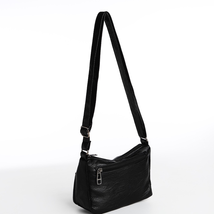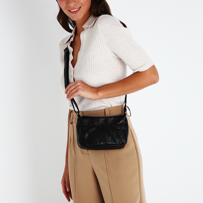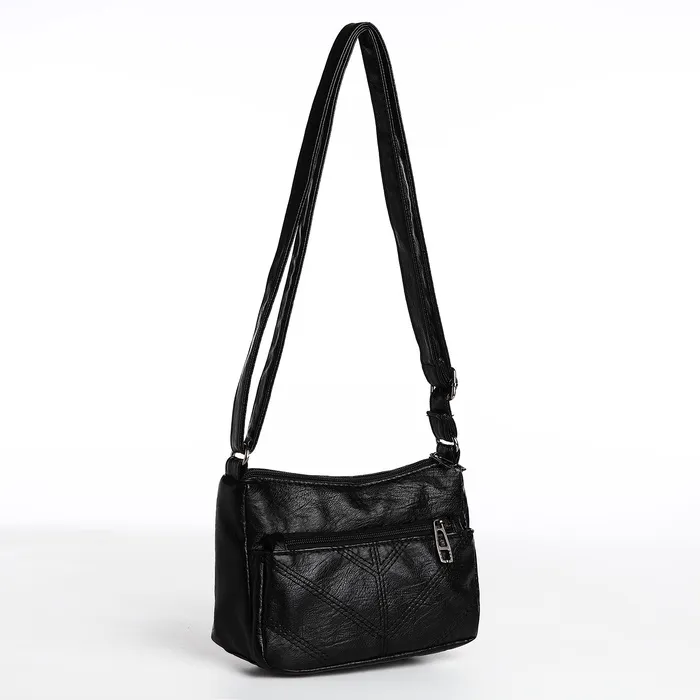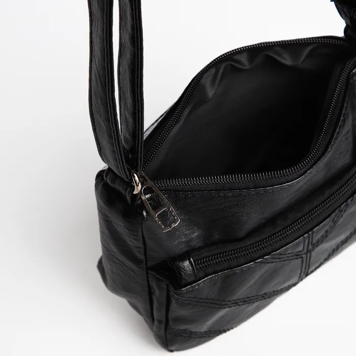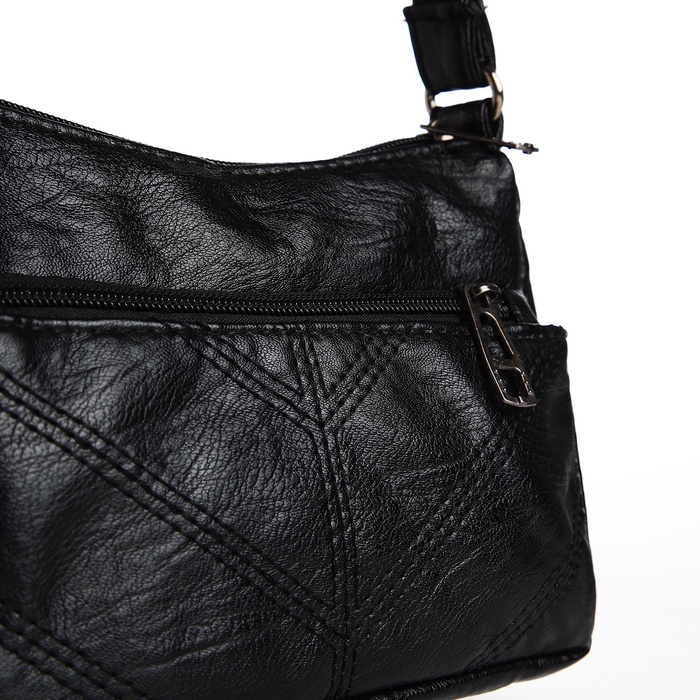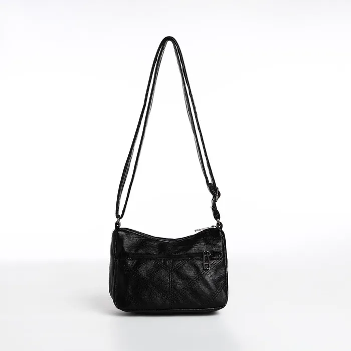 Сумка женская кросс-боди на молнии, 19×9×14 см, со стёжкой, чёрная — Характеристики