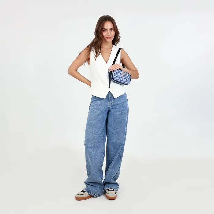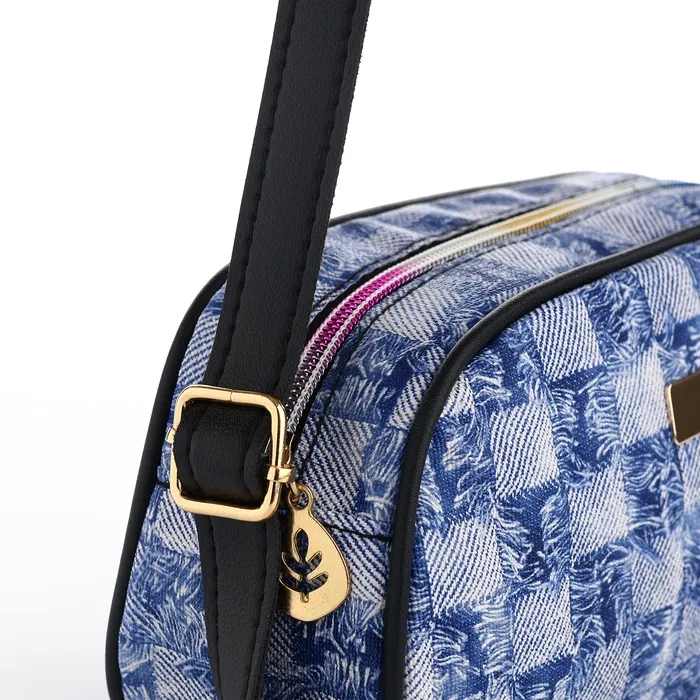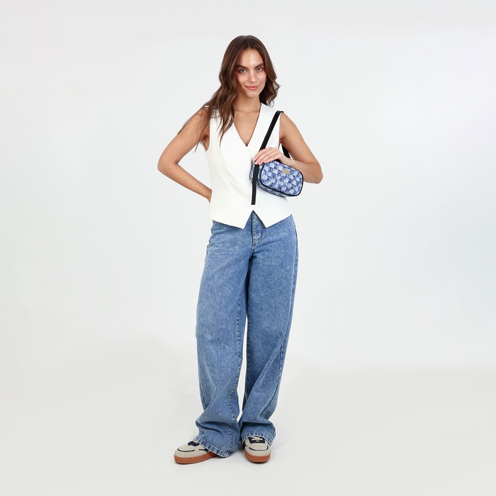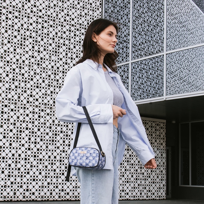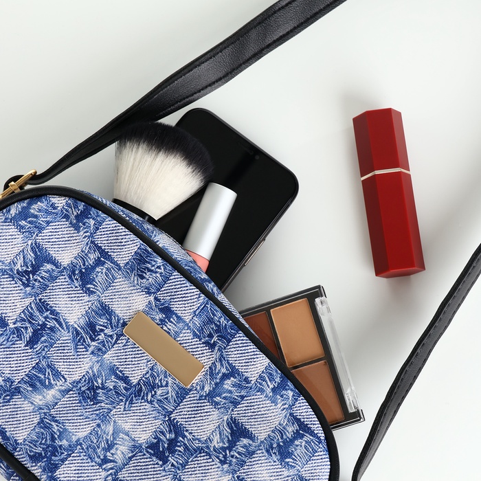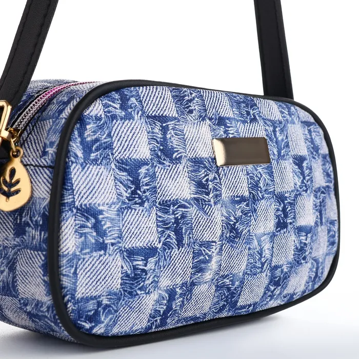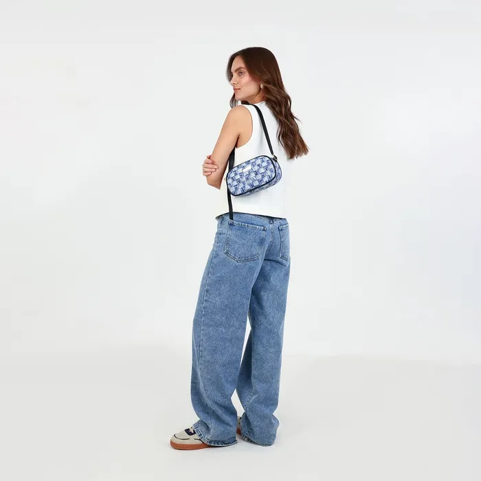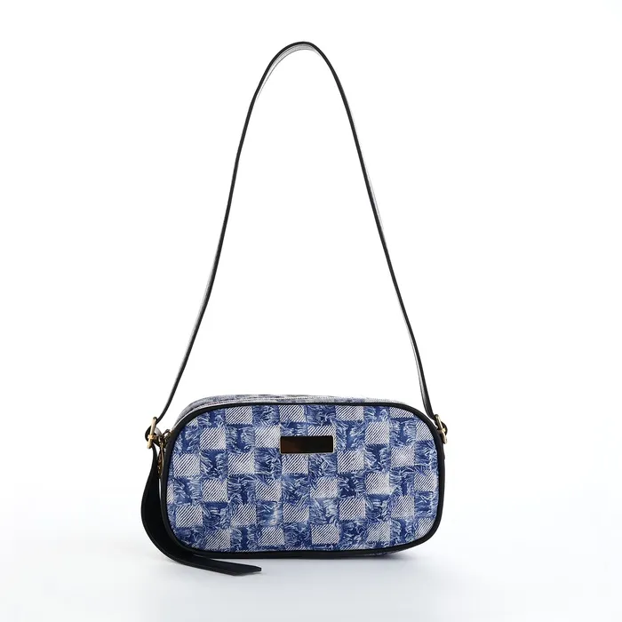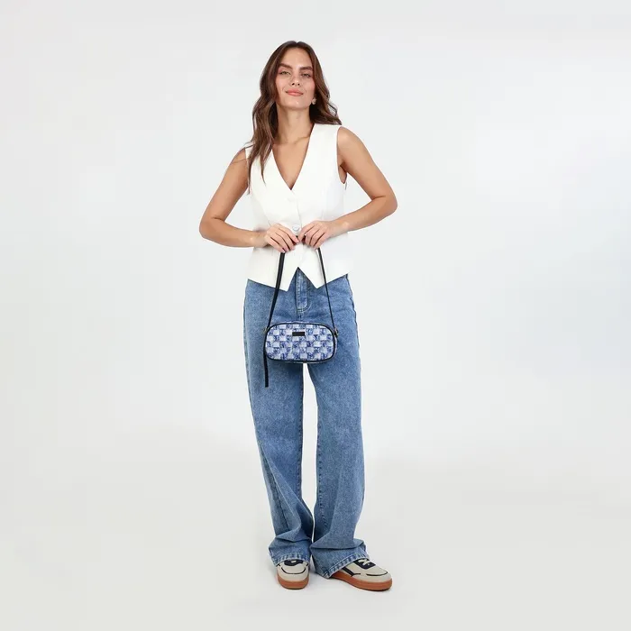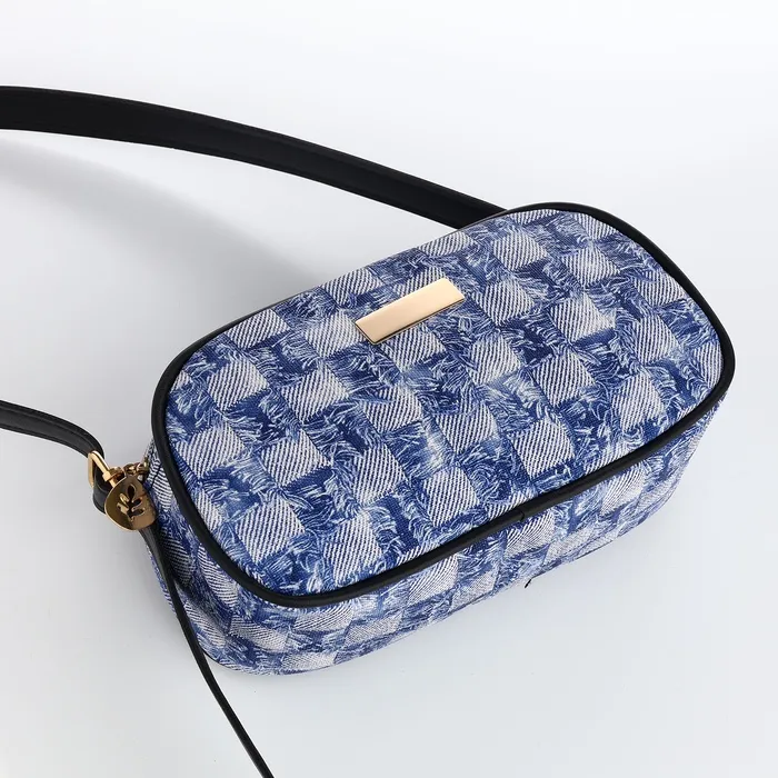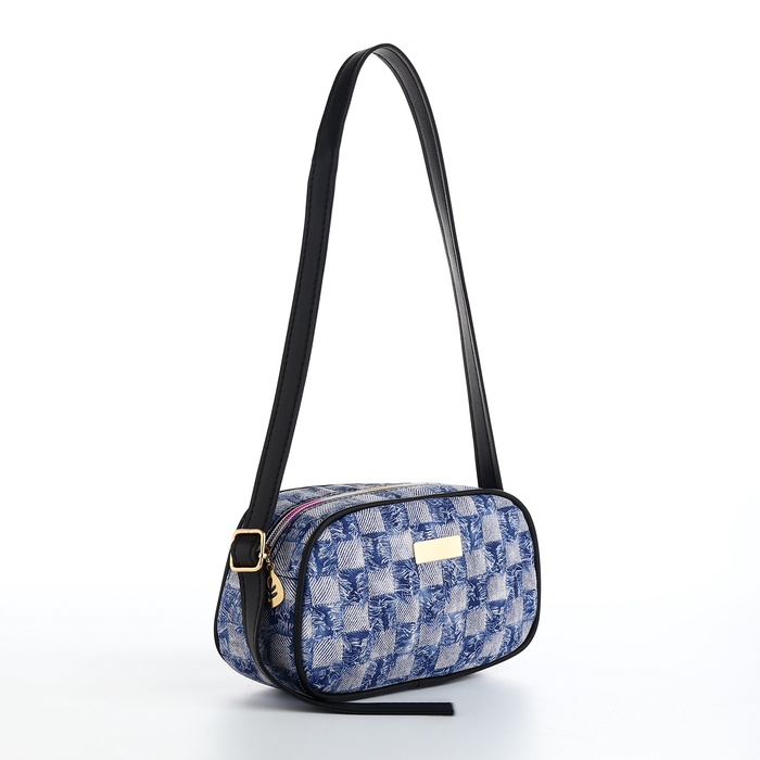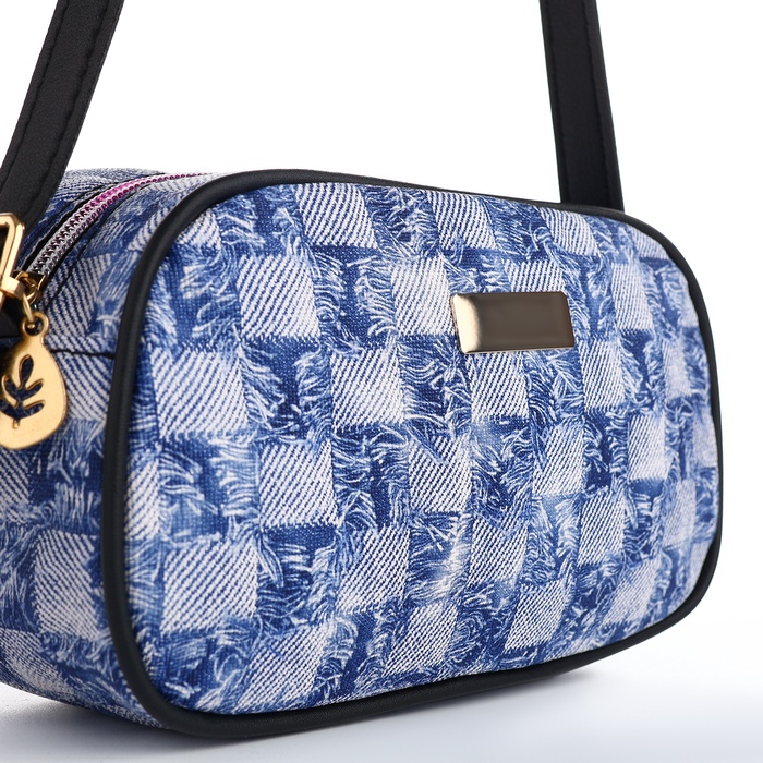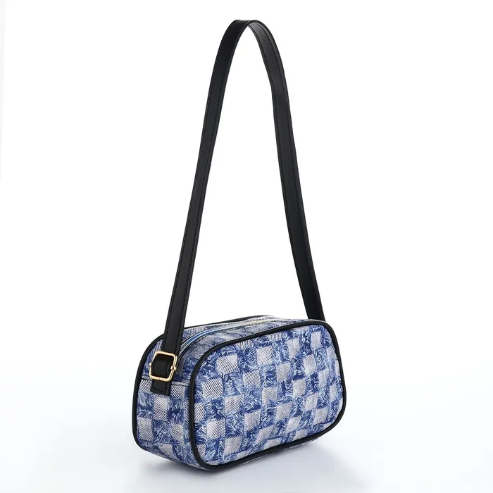 Сумка женская кросс-боди на молнии, 20.5×6.5×11.5 см, в клетку, синяя — Характеристики