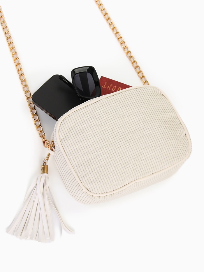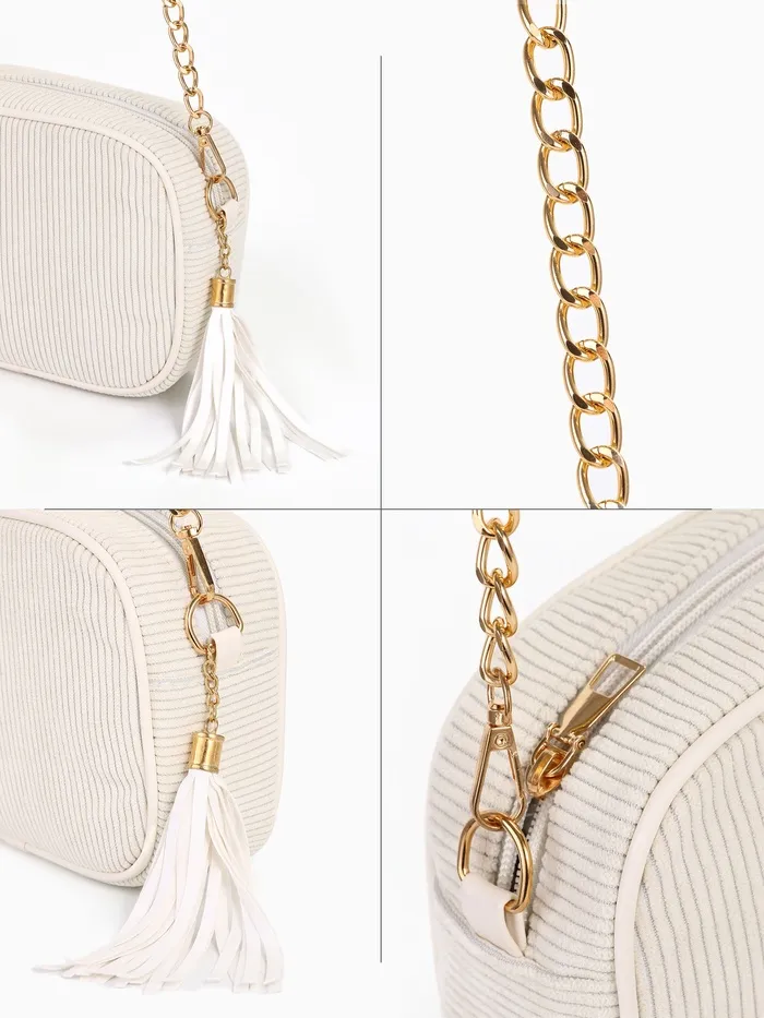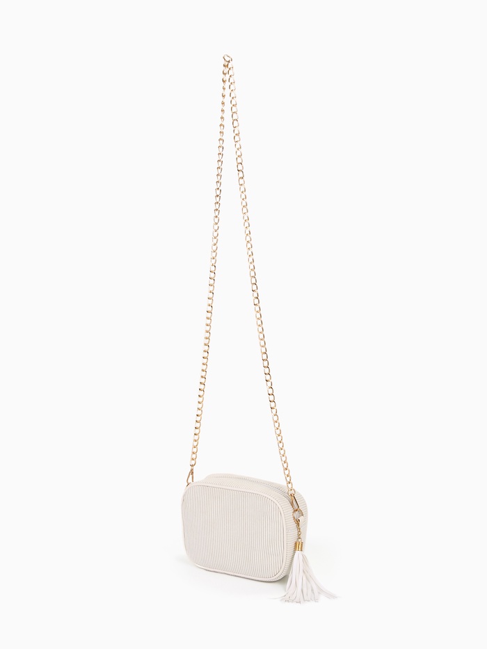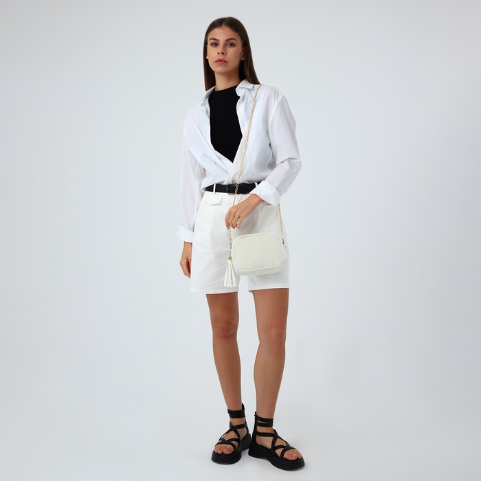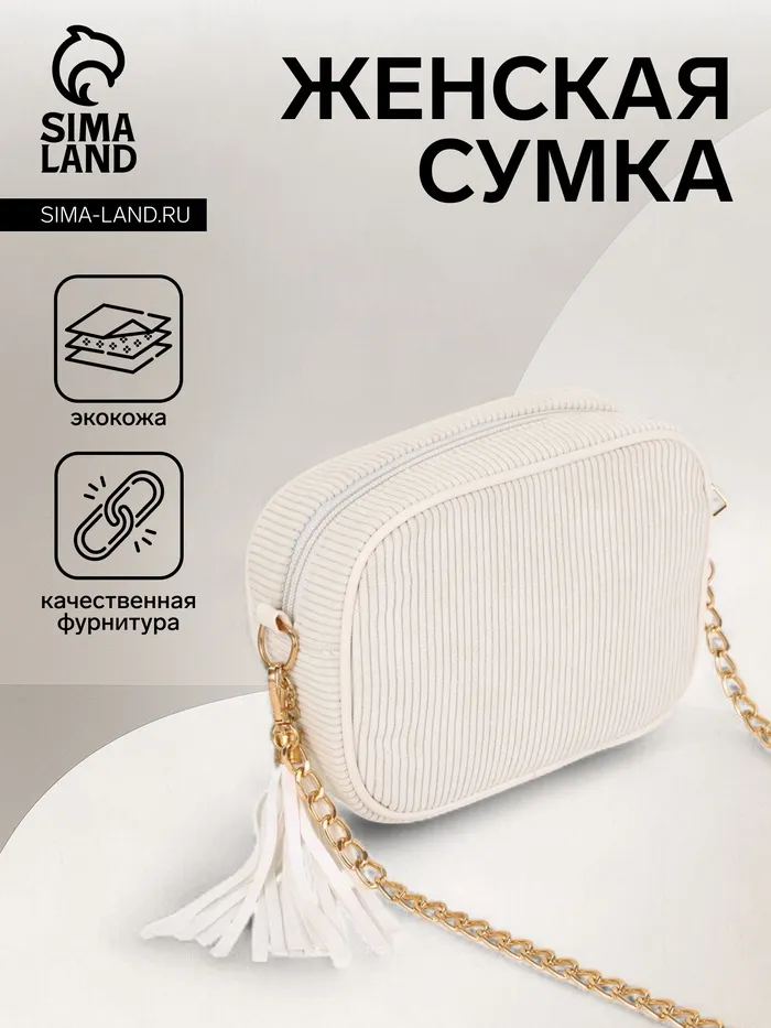 Сумка женская кросс-боди на молнии, 20×7×15 см, на цепочке, бежевая — Характеристики