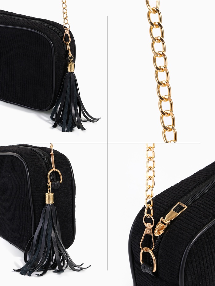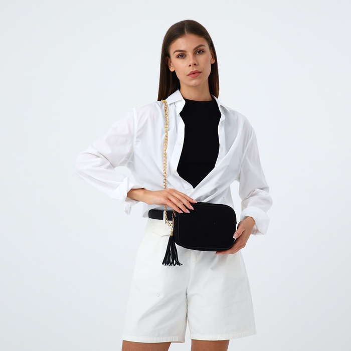 Сумка женская кросс-боди на молнии, 20×7×15 см, на цепочке, чёрная — Характеристики