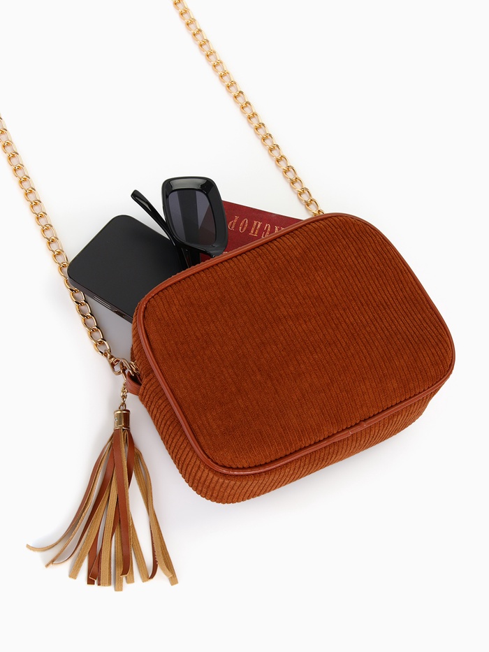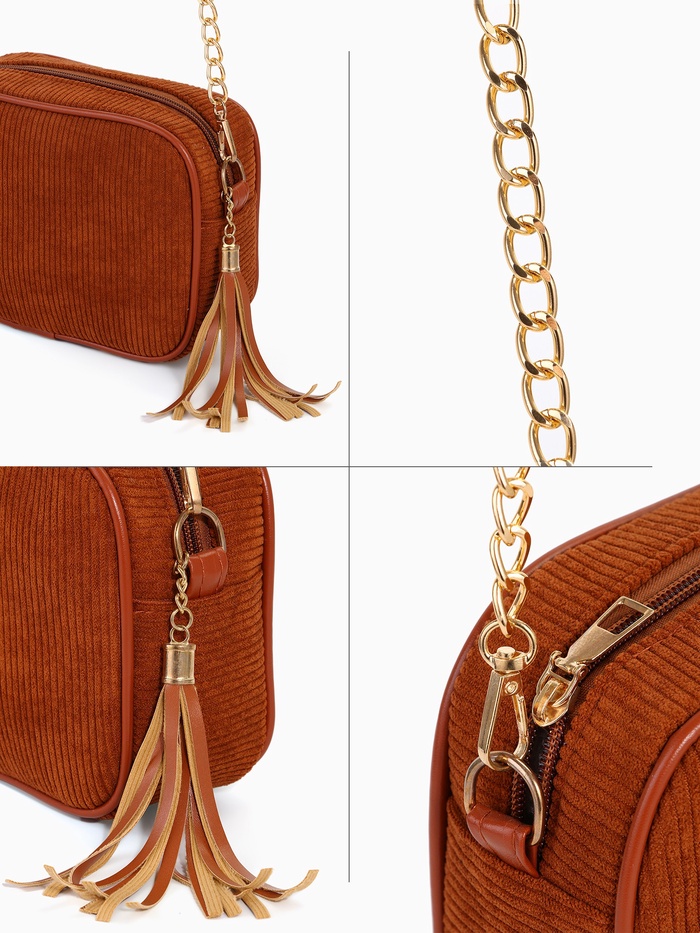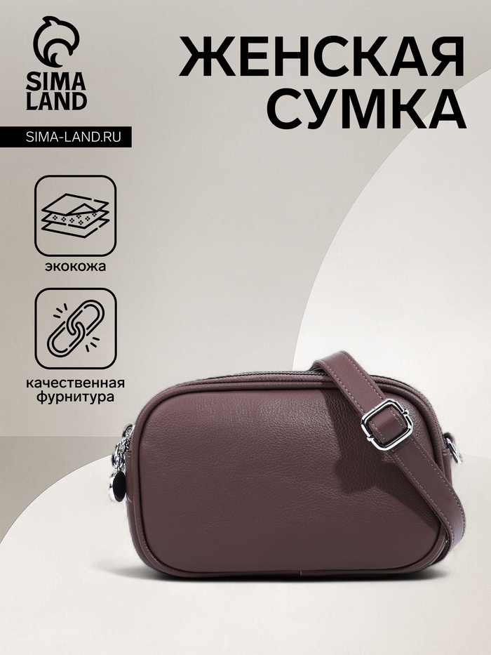 Сумка женская кросс-боди на молнии, 20×7×15 см, на цепочке, коричневая — Характеристики