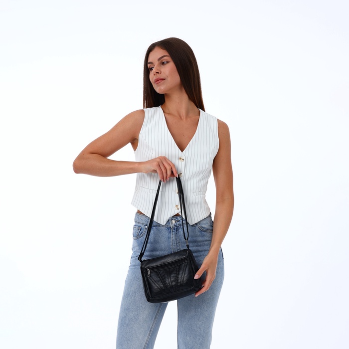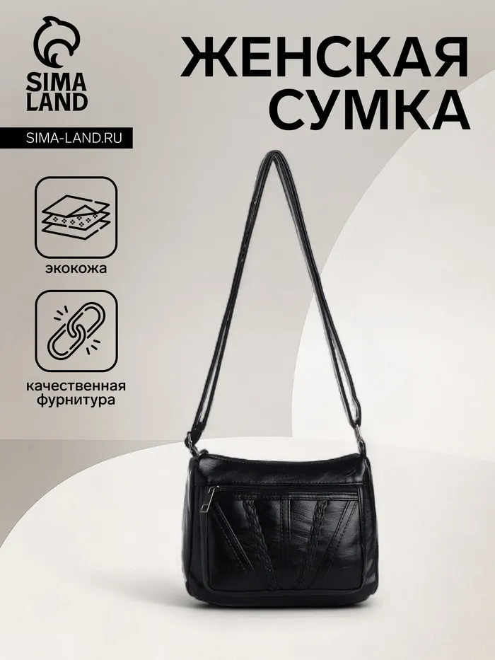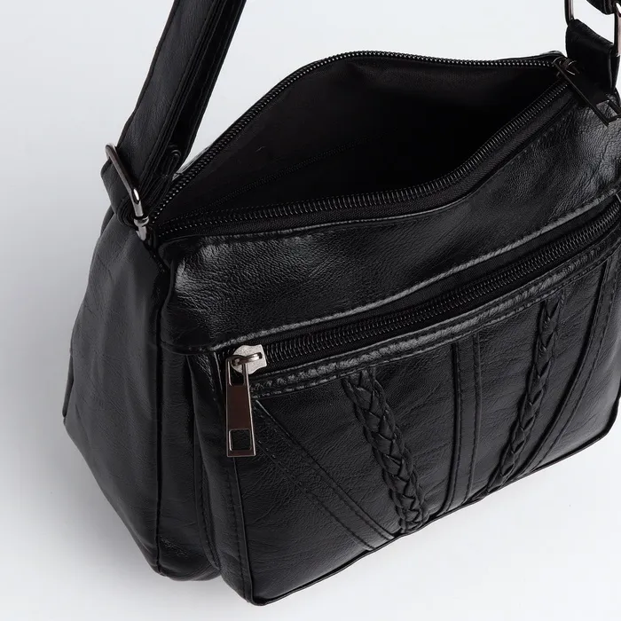 Сумка женская кросс-боди на молнии, 20×8.5×15 см, однотонная, чёрная — Характеристики