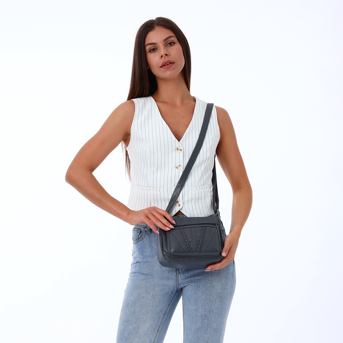 Сумка женская кросс-боди на молнии, 20×8.5×15 см, серая — Характеристики