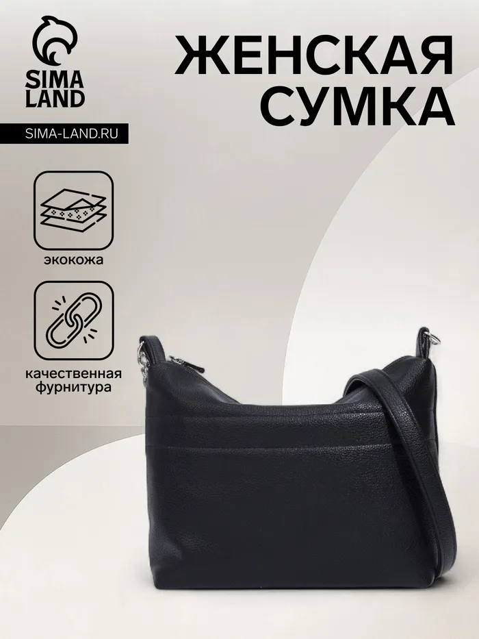 Сумка женская кросс-боди на молнии, 21.5×8×18 см, чёрная — Характеристики