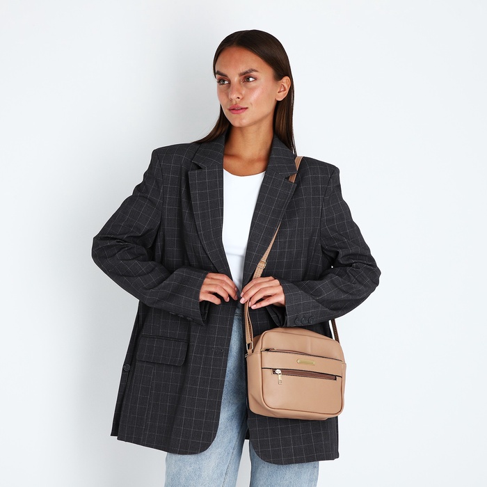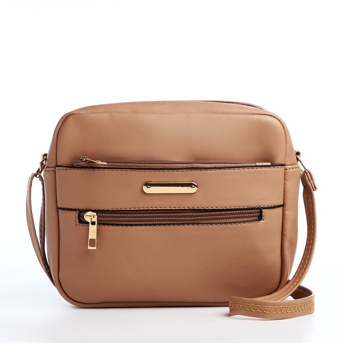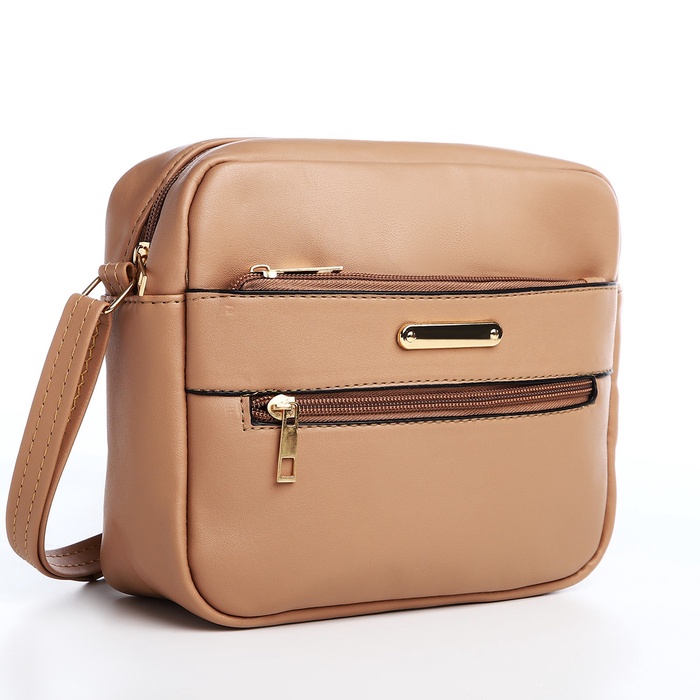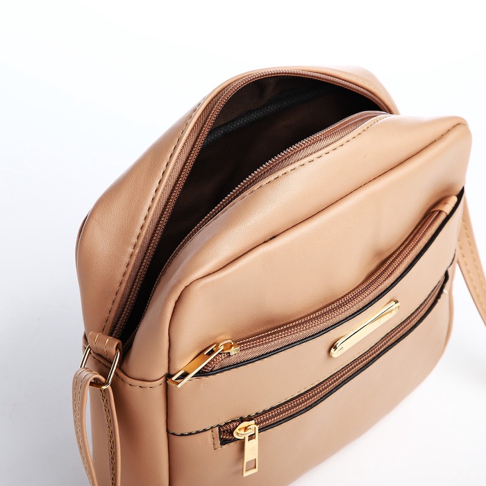Сумка женская кросс-боди на молнии, 21×7.5×17 см, бежевая — Характеристики