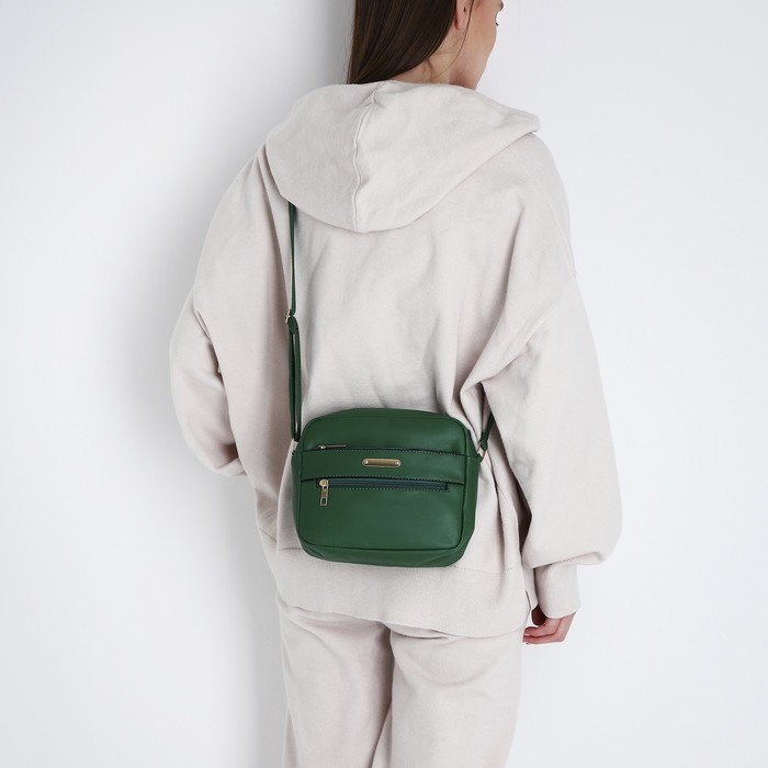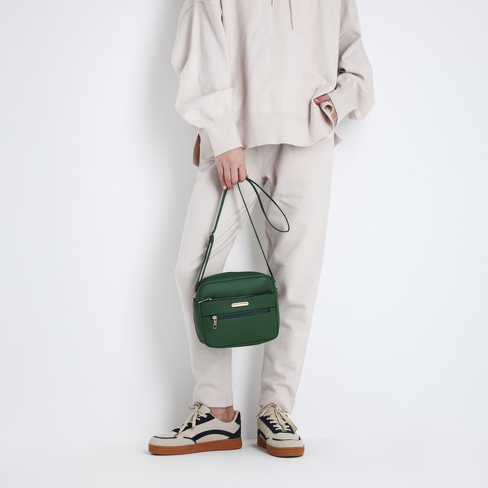 Сумка женская кросс-боди на молнии, 21×7.5×17 см, зелёная — Характеристики