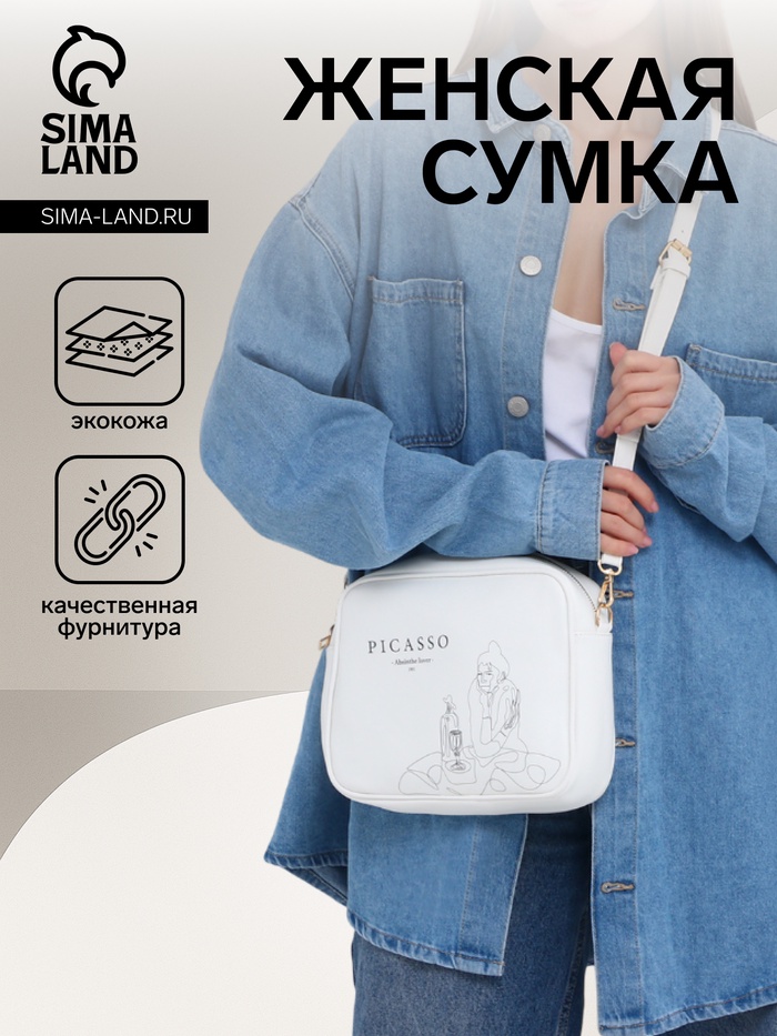 Сумка женская кросс-боди на молнии, 21×7×14 см, белая — Характеристики