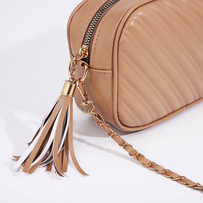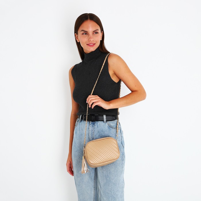 Сумка женская кросс-боди на молнии, 21×7×14 см, бежевая — Характеристики