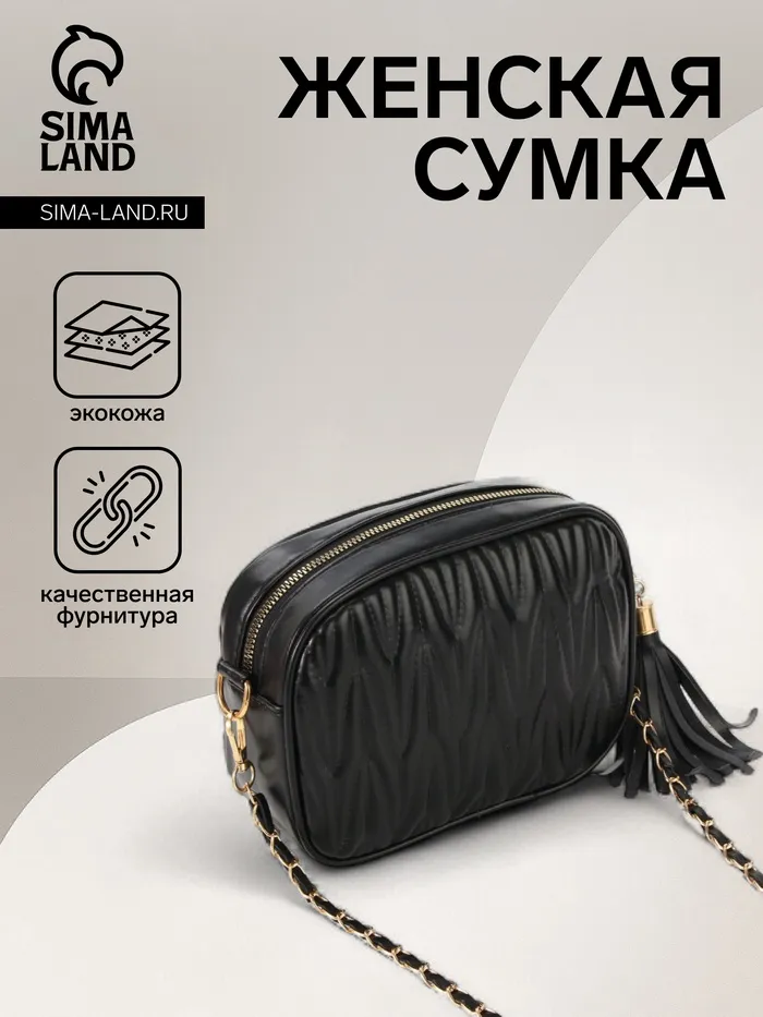 Сумка женская кросс-боди на молнии, 21×7×14 см, чёрная — Характеристики