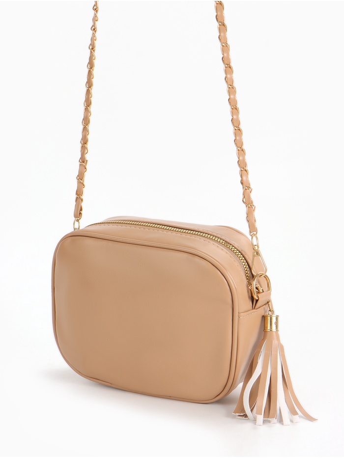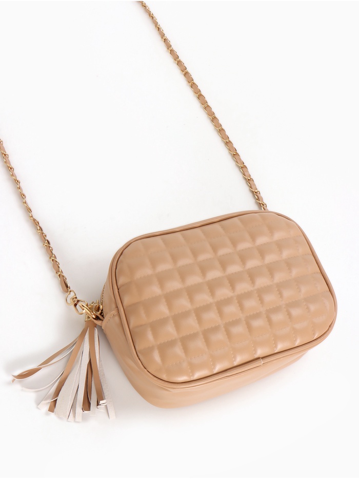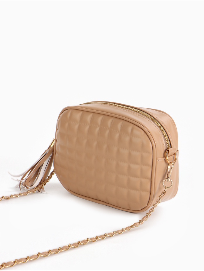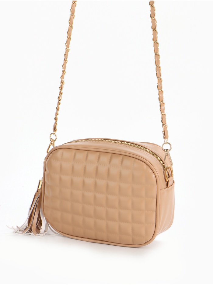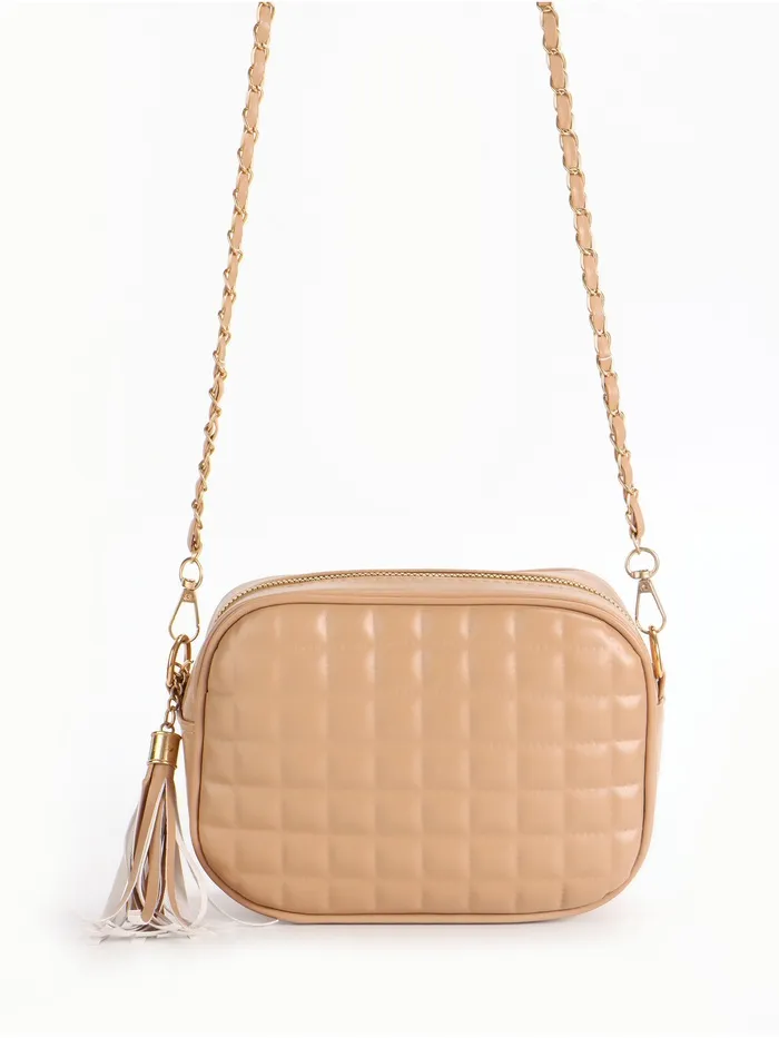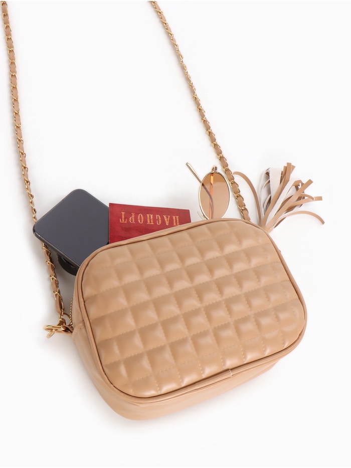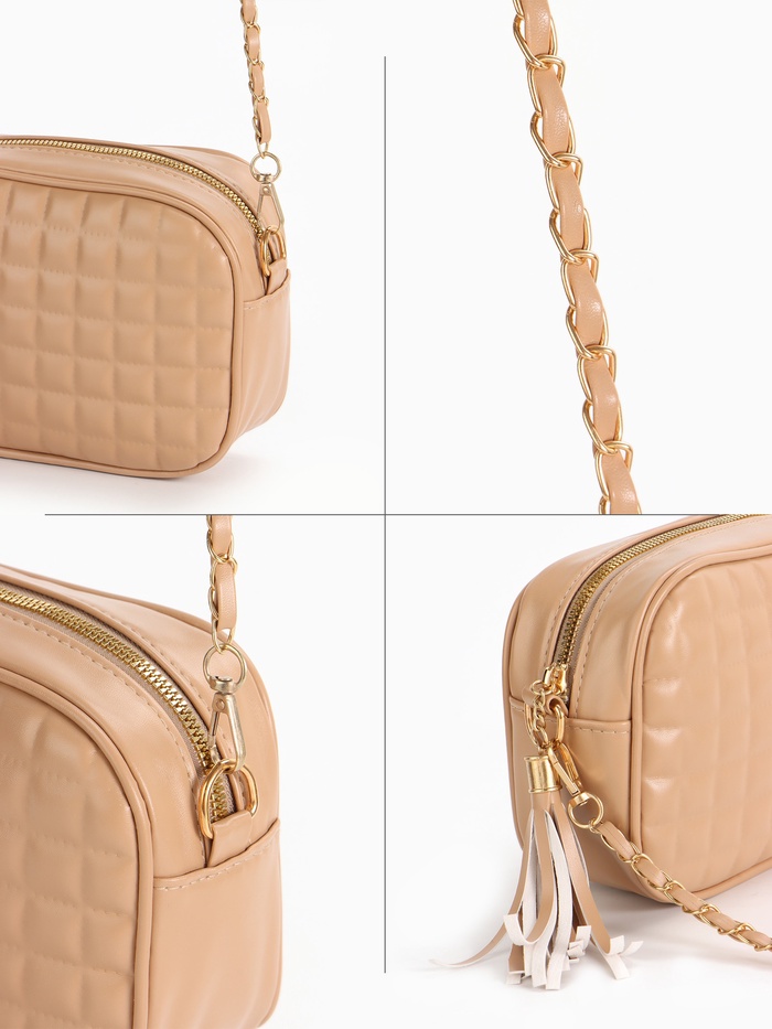 Сумка женская кросс-боди на молнии, 21×7×14 см, в клетку, бежевая — Характеристики