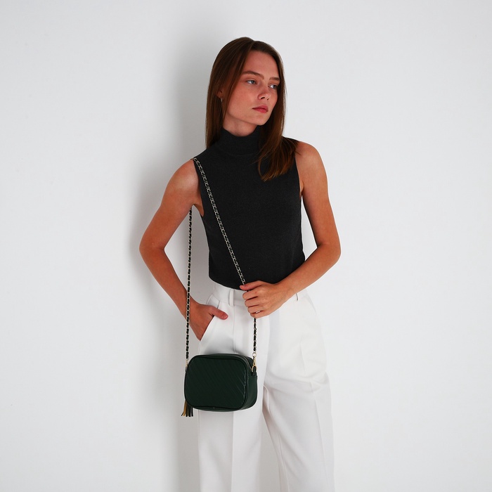 Сумка женская кросс-боди на молнии, 21×7×14 см, зелёный — Характеристики