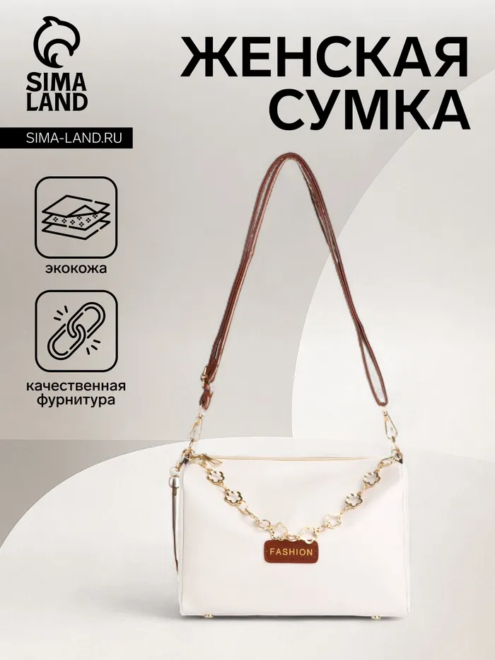 Сумка женская кросс-боди на молнии, 22.5×12×14 см, белая — Характеристики