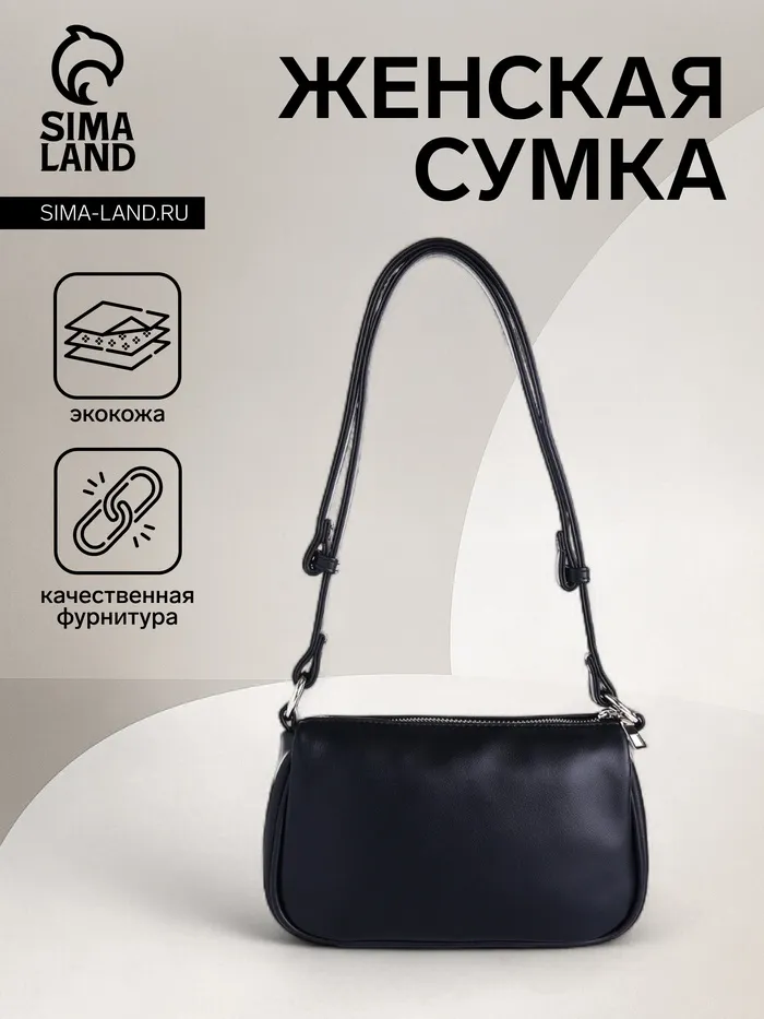 Сумка женская кросс-боди на молнии, 22.5×7×13.5 см, чёрная — Характеристики