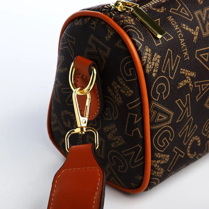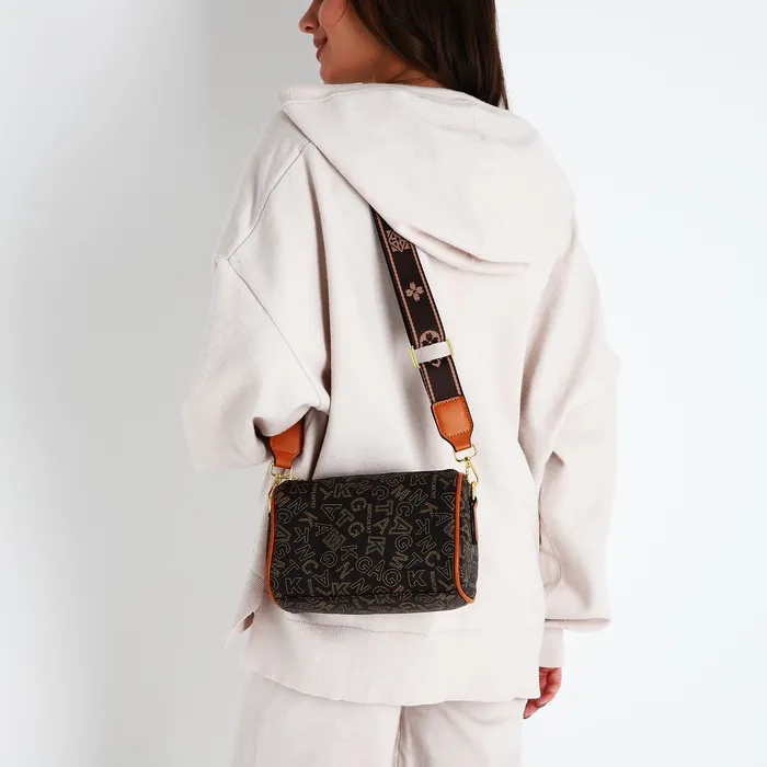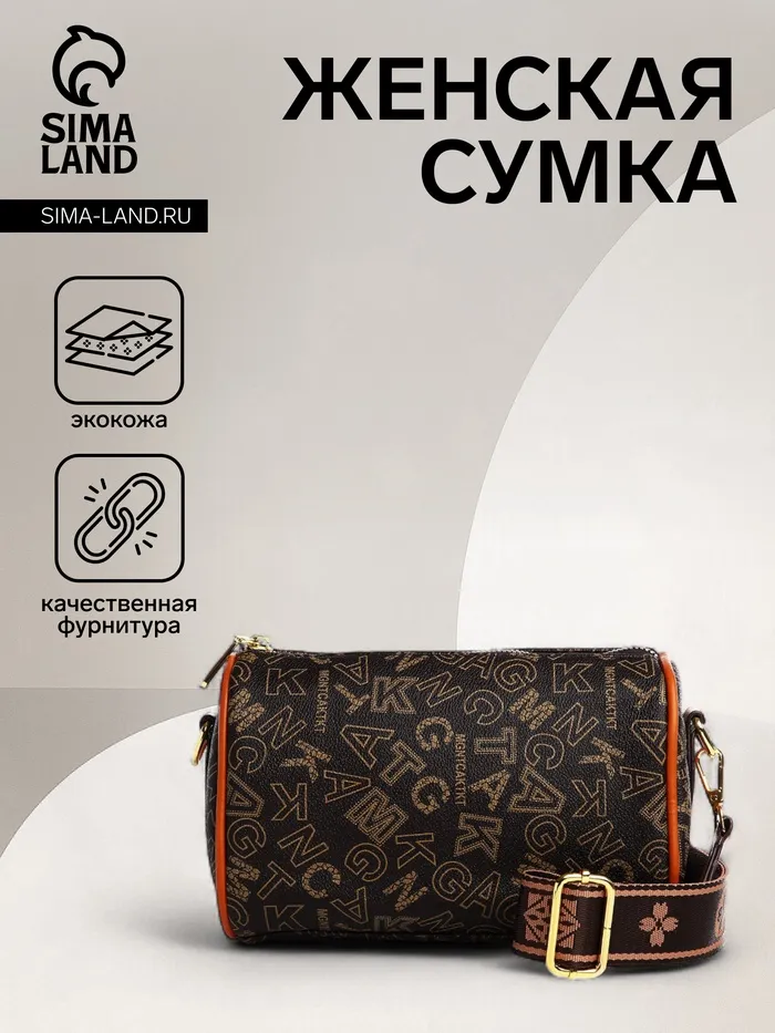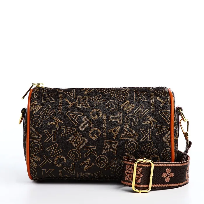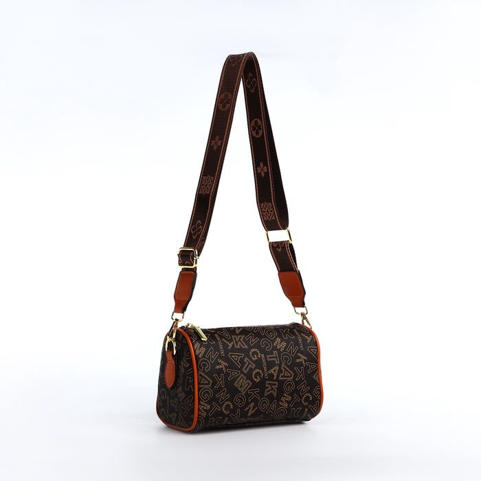 Сумка женская кросс-боди на молнии, 22×11×15 см, с принтом, коричневая — Характеристики