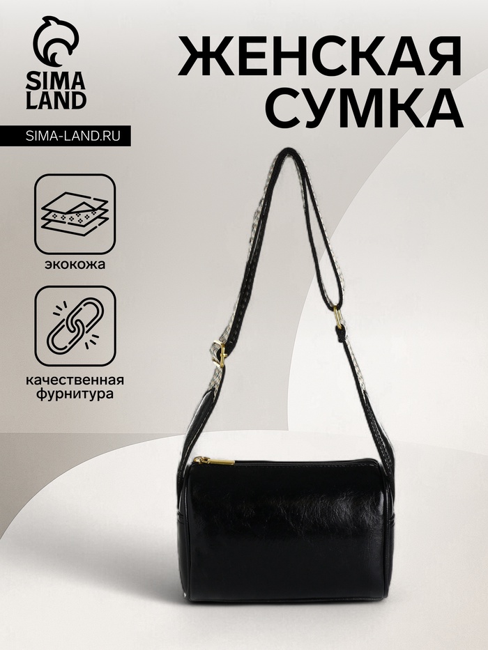 Сумка женская кросс-боди на молнии, 22×9×14 см, чёрная — Характеристики