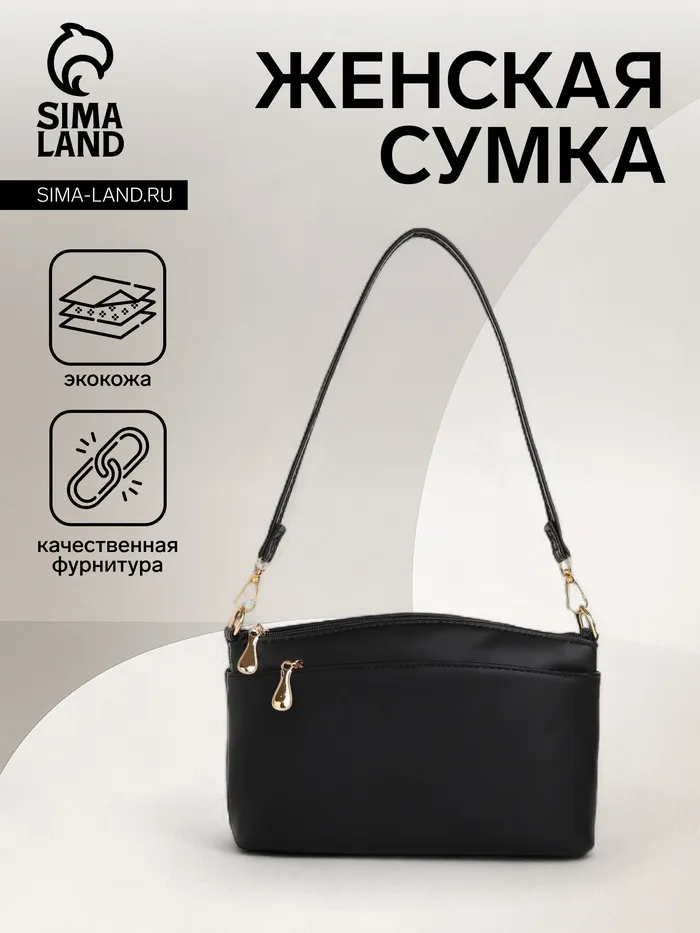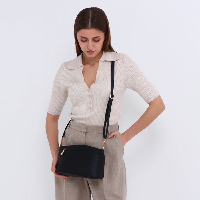 Сумка женская кросс-боди на молнии, 23×9×15 см, чёрная — Характеристики