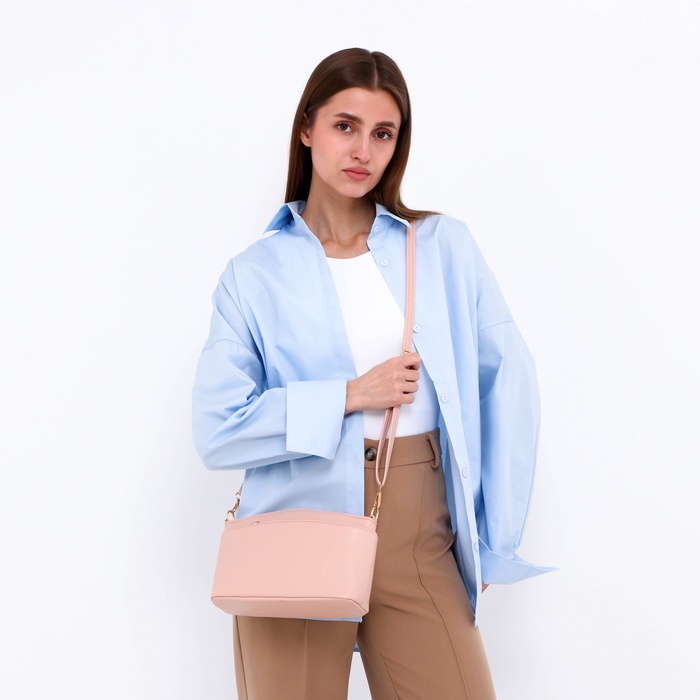 Сумка женская кросс-боди на молнии, 23×9×15 см, пудровая — Характеристики