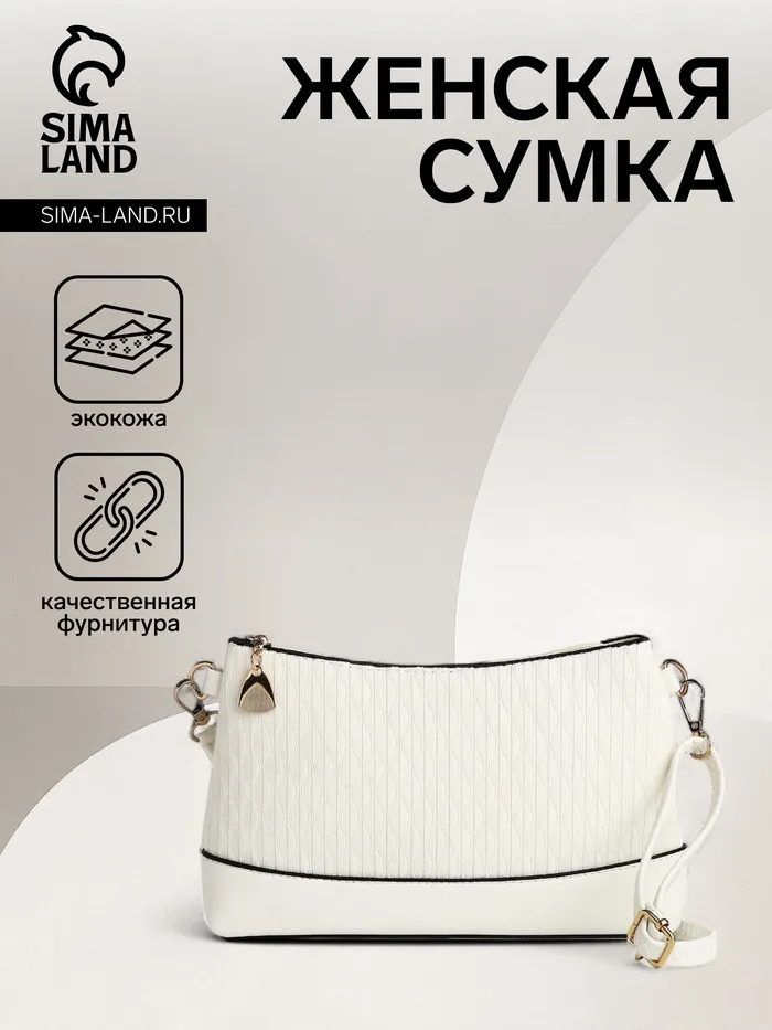 Сумка женская кросс-боди на молнии, 24.5×6.5×14 см, белая — Характеристики