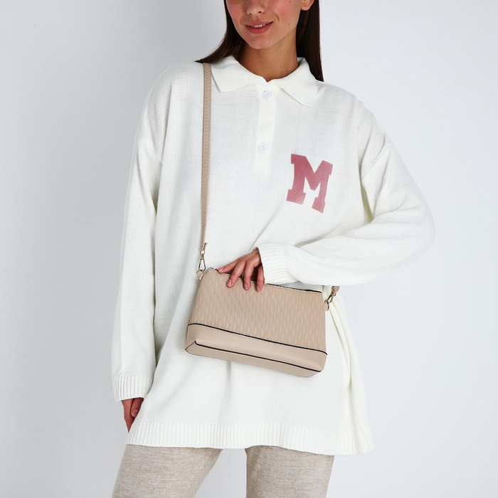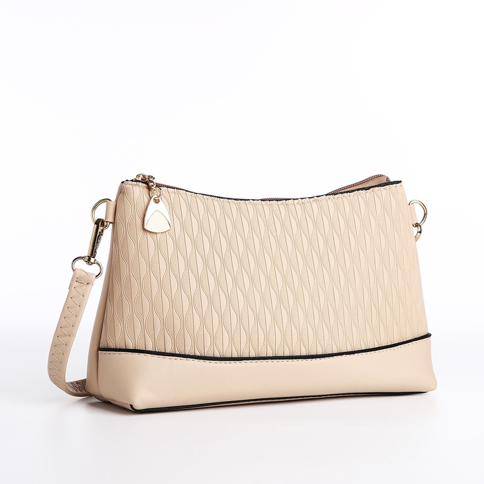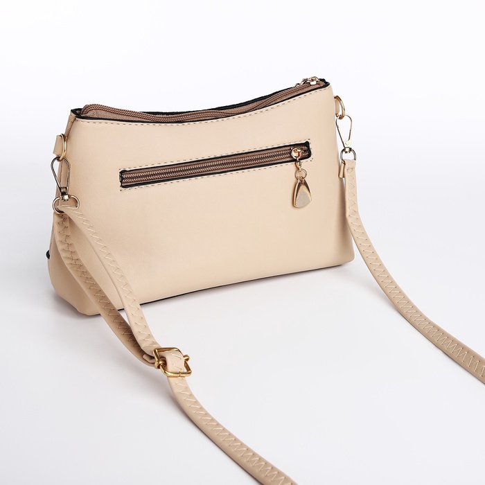 Сумка женская кросс-боди на молнии, 24.5×6.5×14 см, бежевая — Характеристики