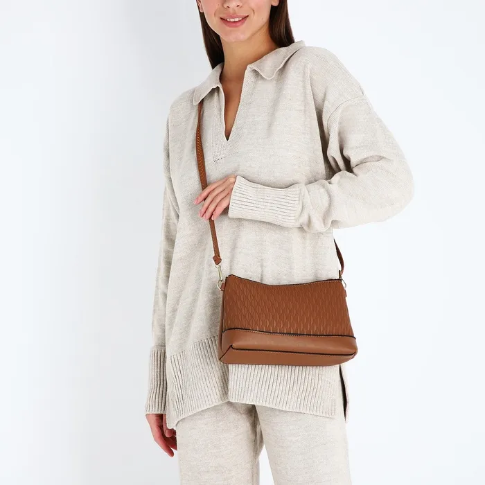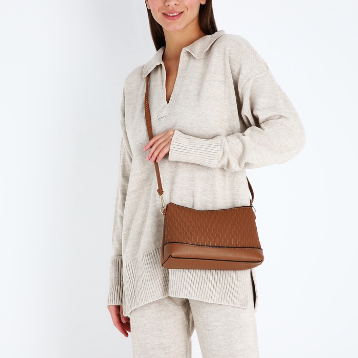 Сумка женская кросс-боди на молнии, 24.5×6.5×14 см, коричневая — Характеристики