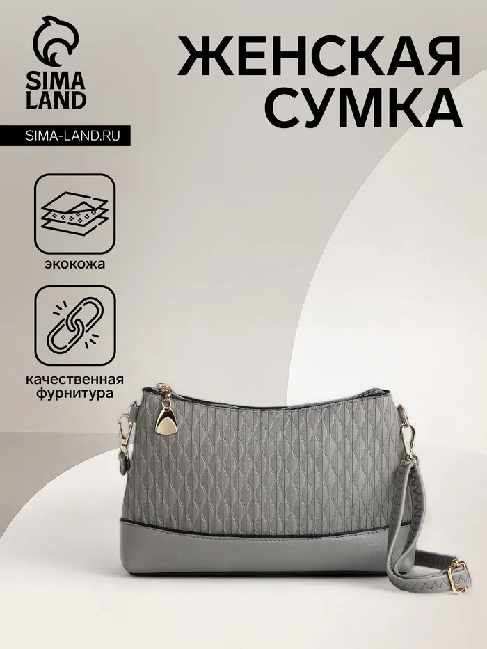 Сумка женская кросс-боди на молнии, 24.5×6.5×14 см, серая — Характеристики