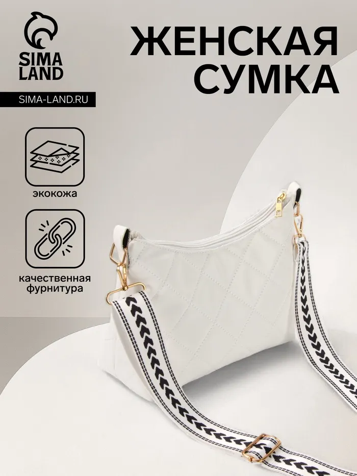 Сумка женская кросс-боди на молнии, 24×10×19 см, белая — Характеристики