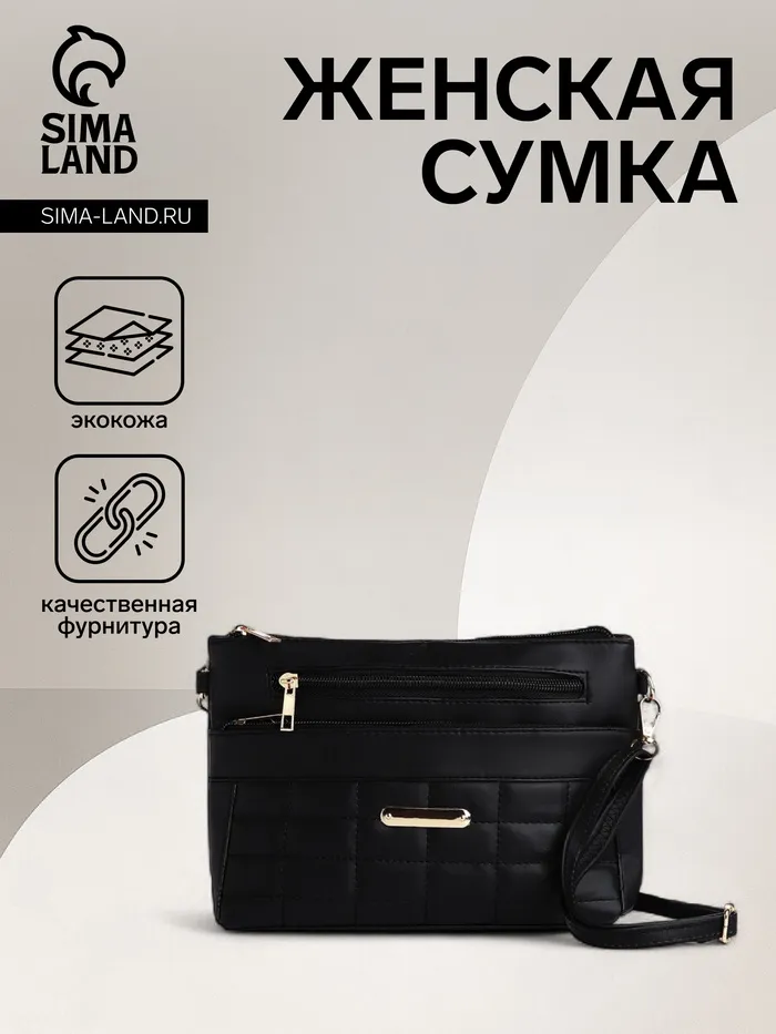 Сумка женская кросс-боди на молнии, 24×6×17 см, чёрная — Характеристики